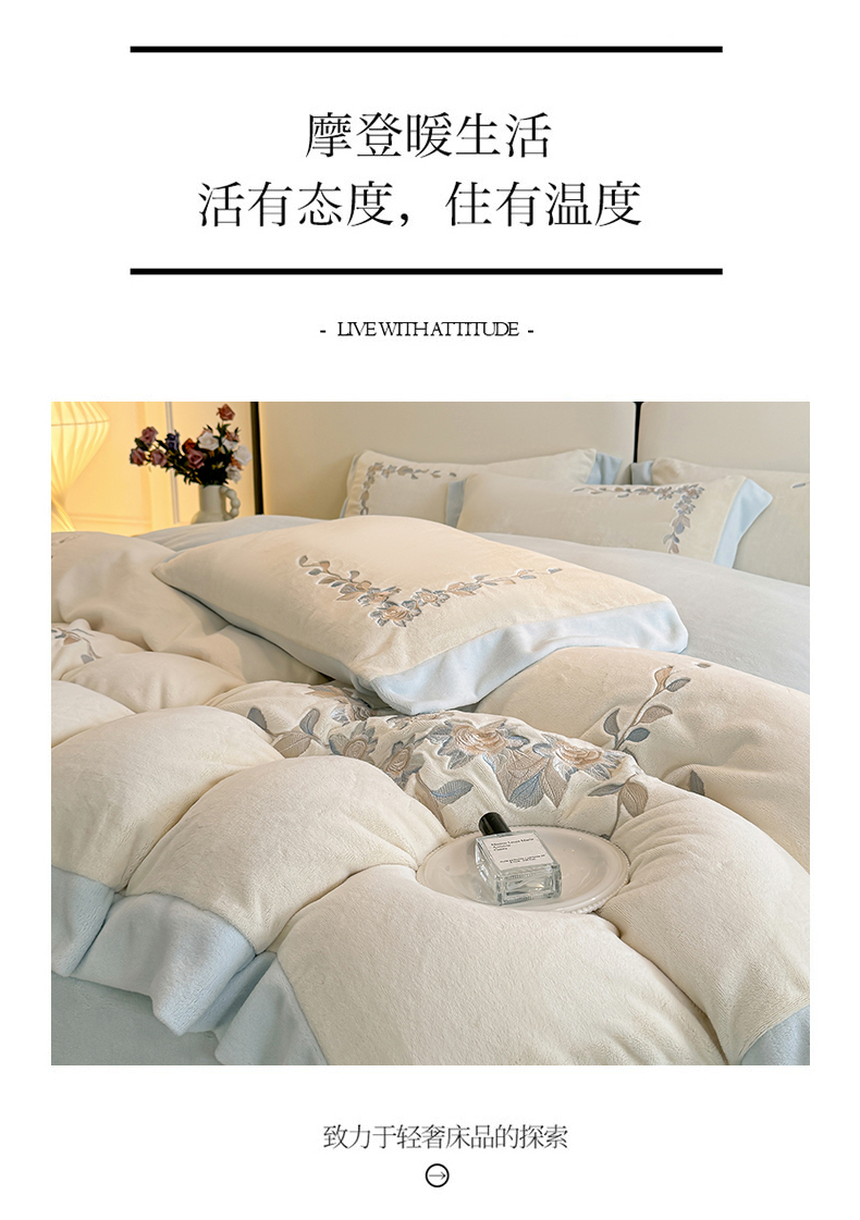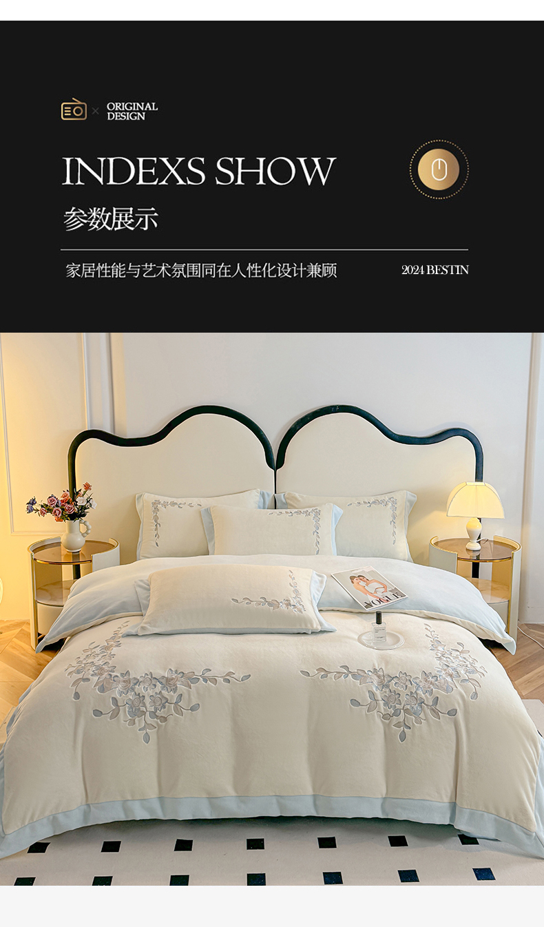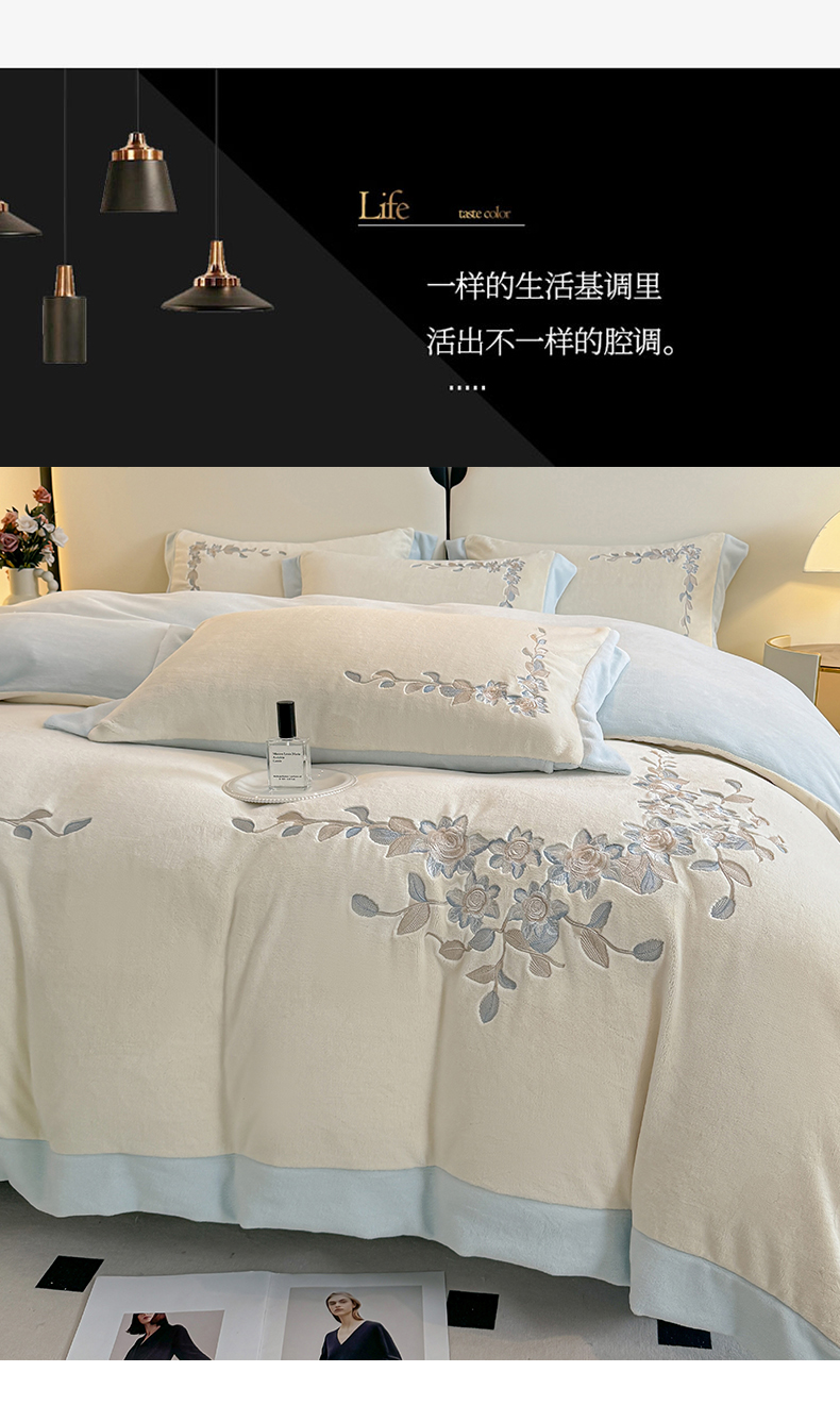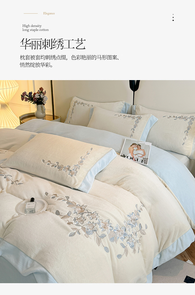 (总)KA家纺 2025新款冬季设计师款牛奶绒刺绣四件套沐言系列,沐言白+卡其,沐言白+蓝,沐言粉,沐言蓝