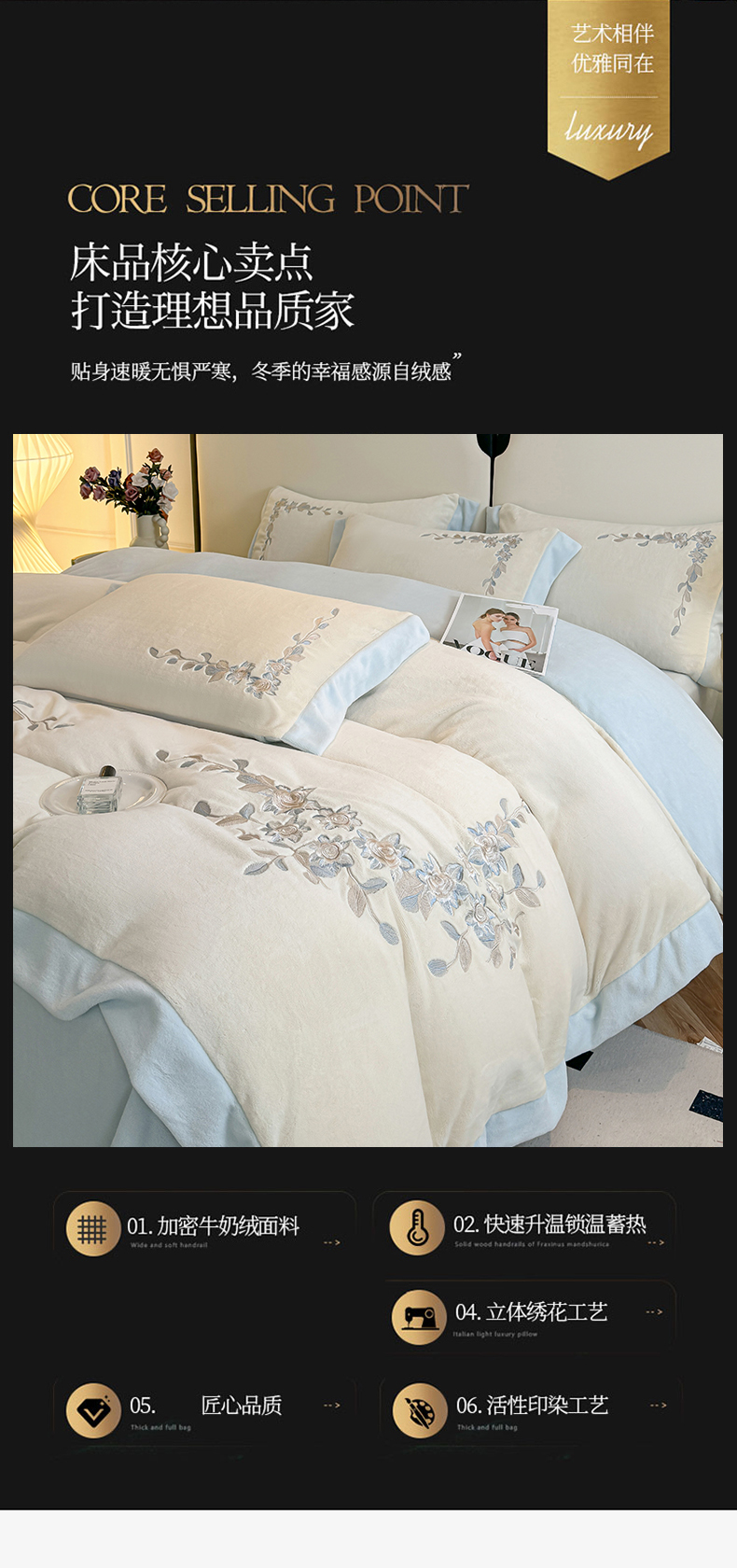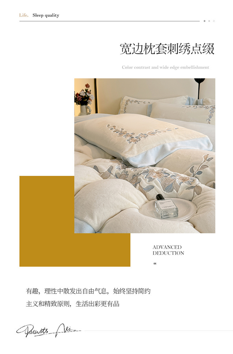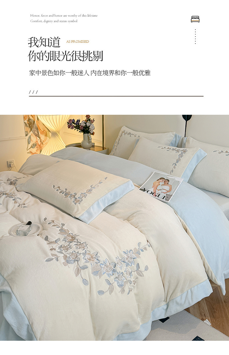 (总)KA家纺 2025新款冬季设计师款牛奶绒刺绣四件套沐言系列,沐言白+卡其,沐言白+蓝,沐言粉,沐言蓝