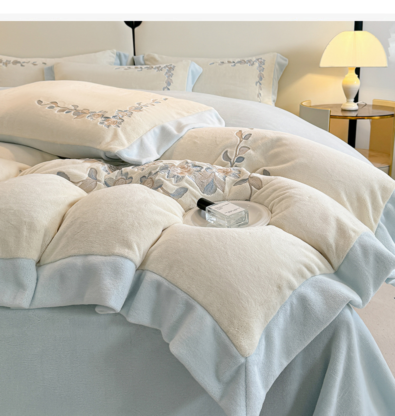 (总)KA家纺 2025新款冬刺绣款宽边拼角牛奶绒四件套-沐言系列,沐言蓝,沐言白+卡其,沐言白+蓝,沐言粉
