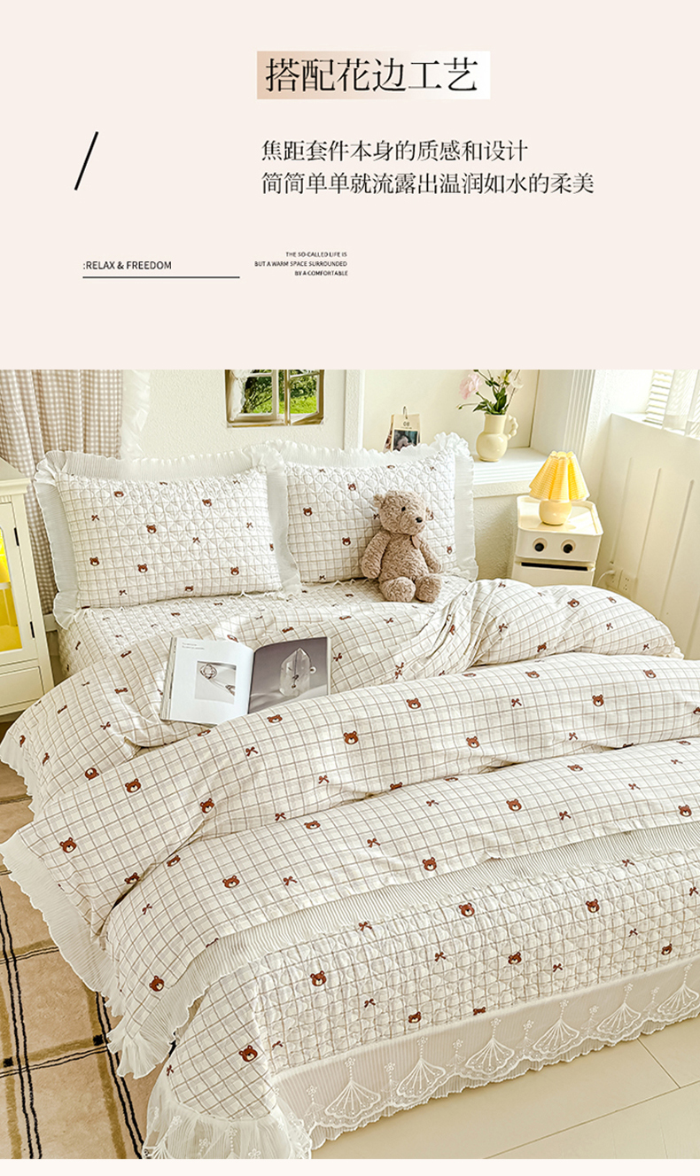 • 91家纺网 家纺一手货源 找家纺 冬然 2024新款全棉床盖纯棉床盖夹棉床单全棉床单纯棉床单 格子熊
