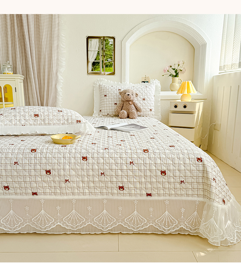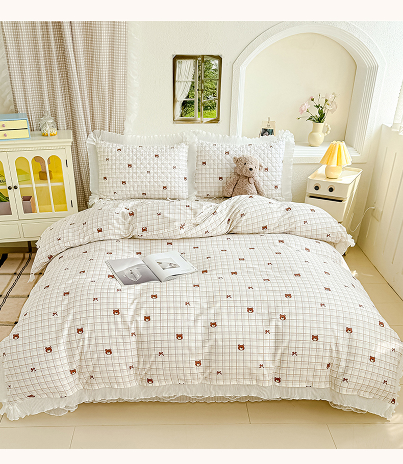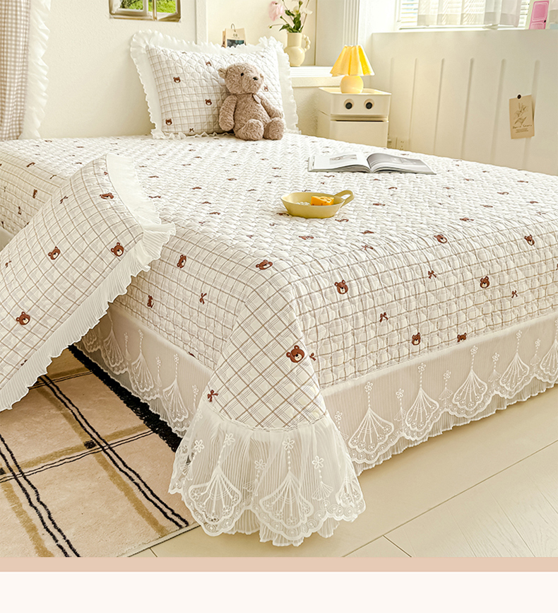 冬然 2024新款全棉床盖纯棉床盖夹棉床单全棉床单纯棉床单 格子熊