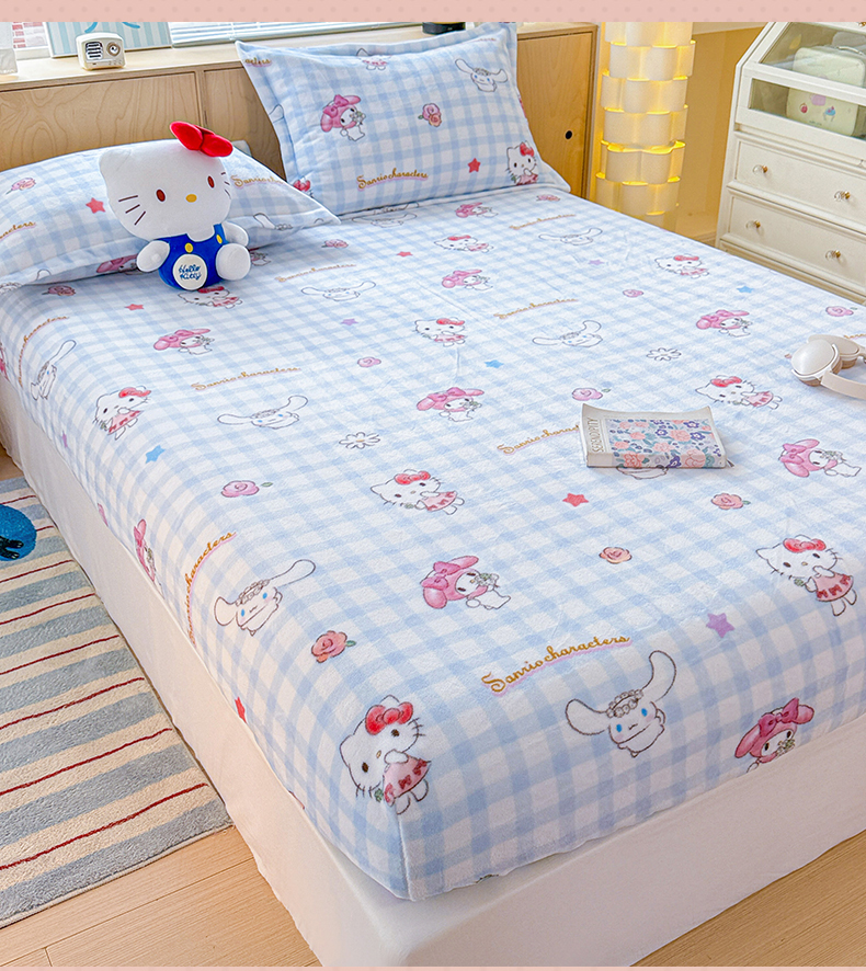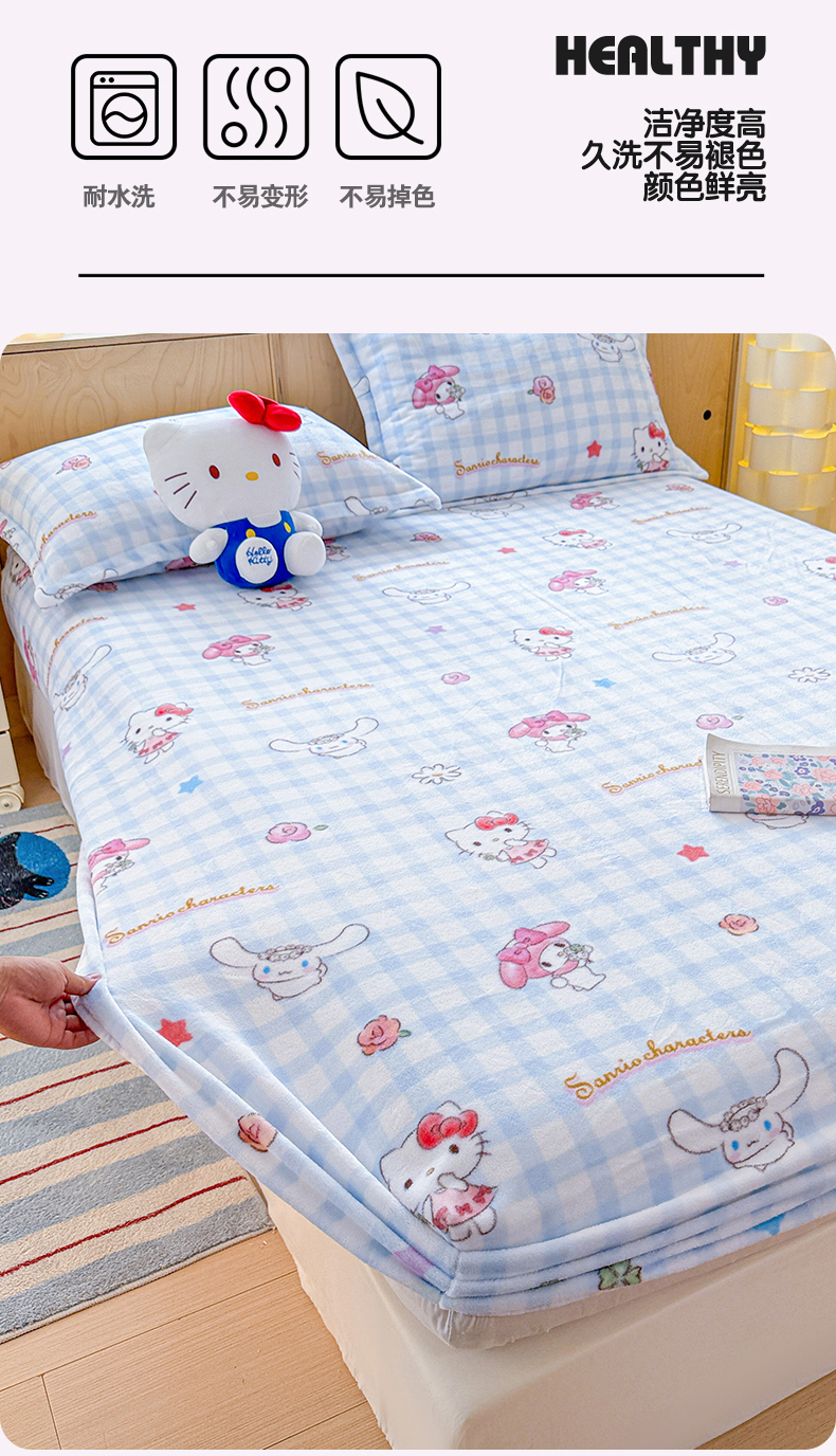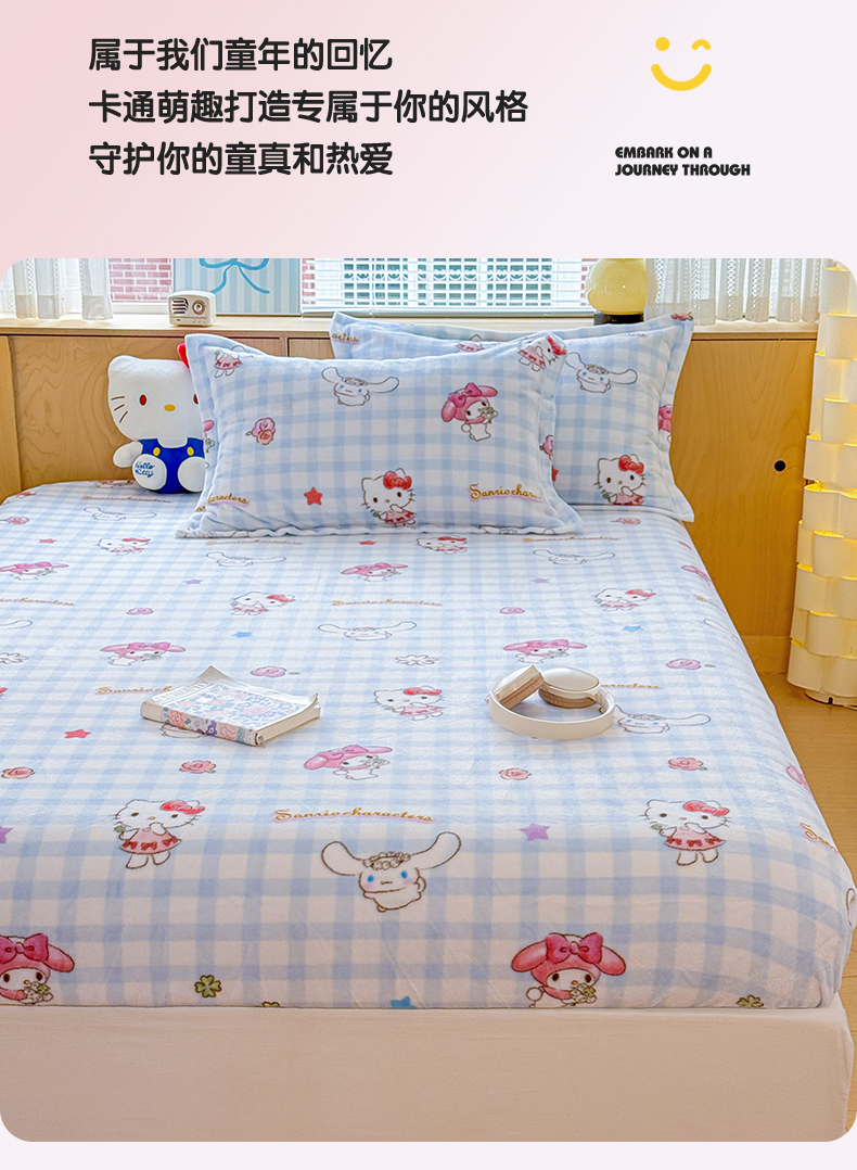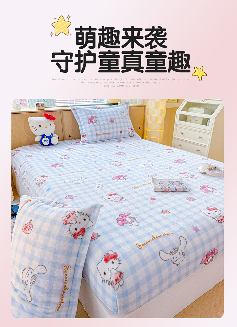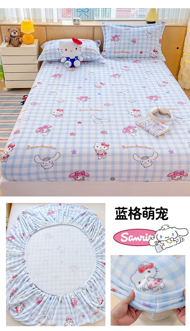名兮-2025经典奥特曼-三丽鸥高克重印花牛奶绒床笠 蓝格萌宠