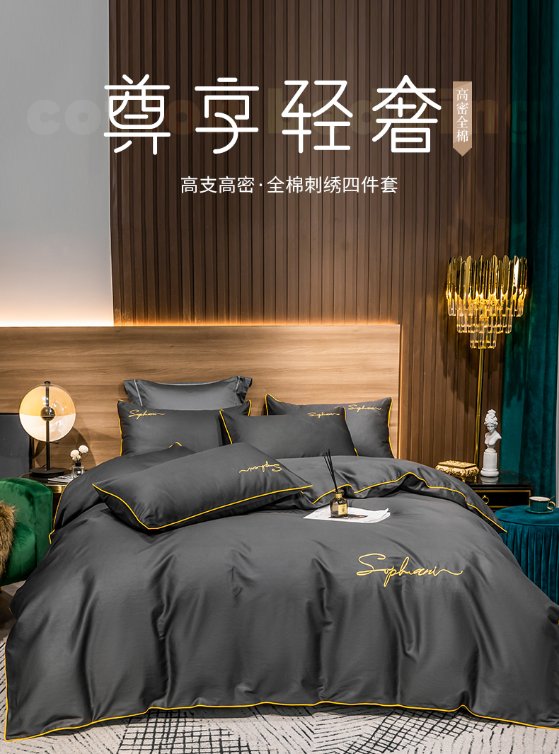 当前位置: 91家纺网 > 商品网购 > 床品套件 > 四件套 > 全棉普通四件套 > 小叮当家纺仓储工厂店 2025新款(热买家秀不断货)40s贡缎长绒棉纯棉字母款全棉四件套轻奢床上用品 绅士灰