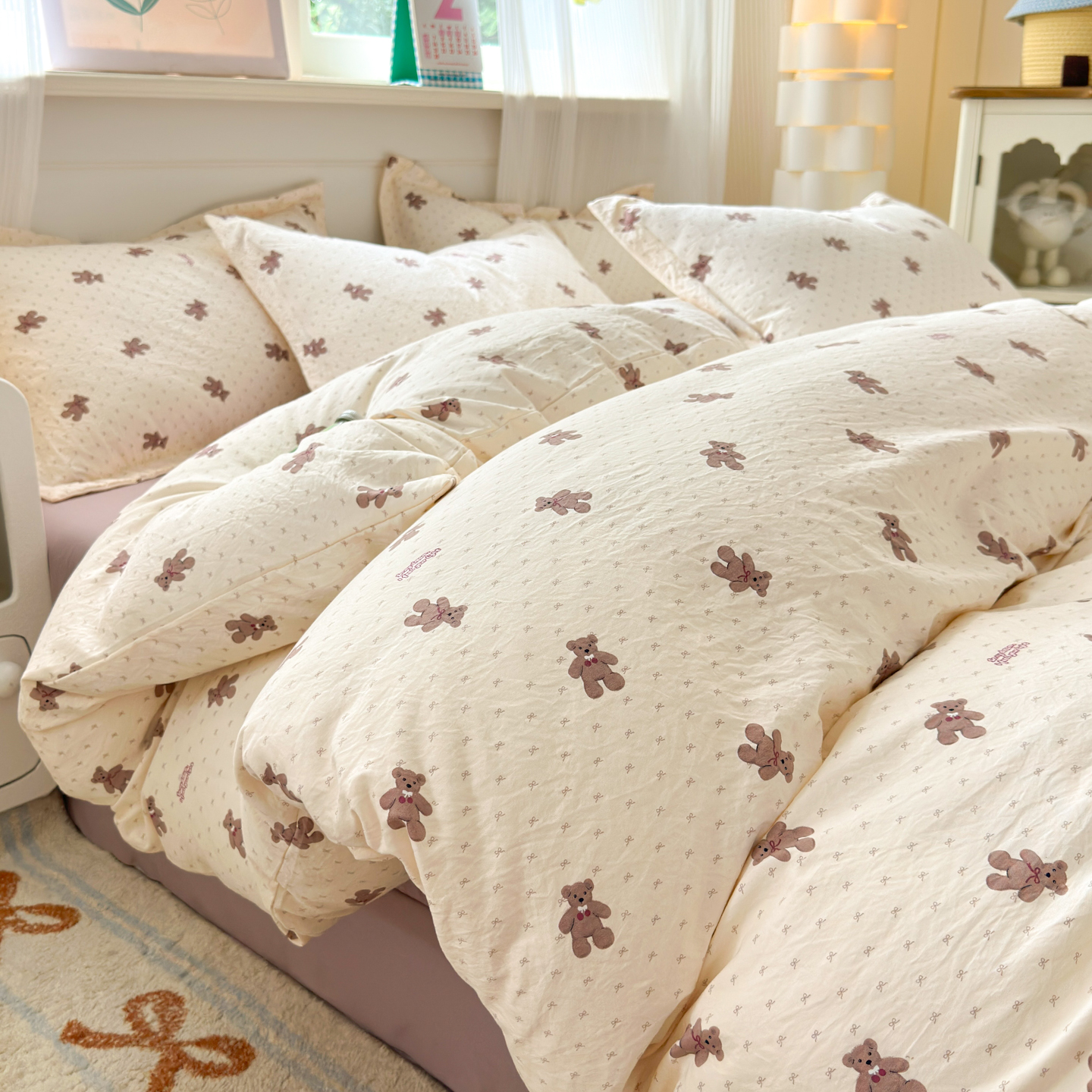 德比尔斯 2025新款爆款韩国小布袋古法水洗棉云感棉四件套 梦想熊