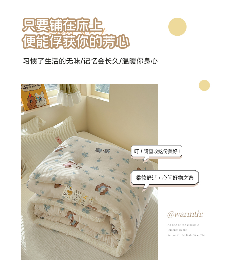 寐居家纺 2025新款牛奶绒+羊羔绒被子被芯 花田小狗