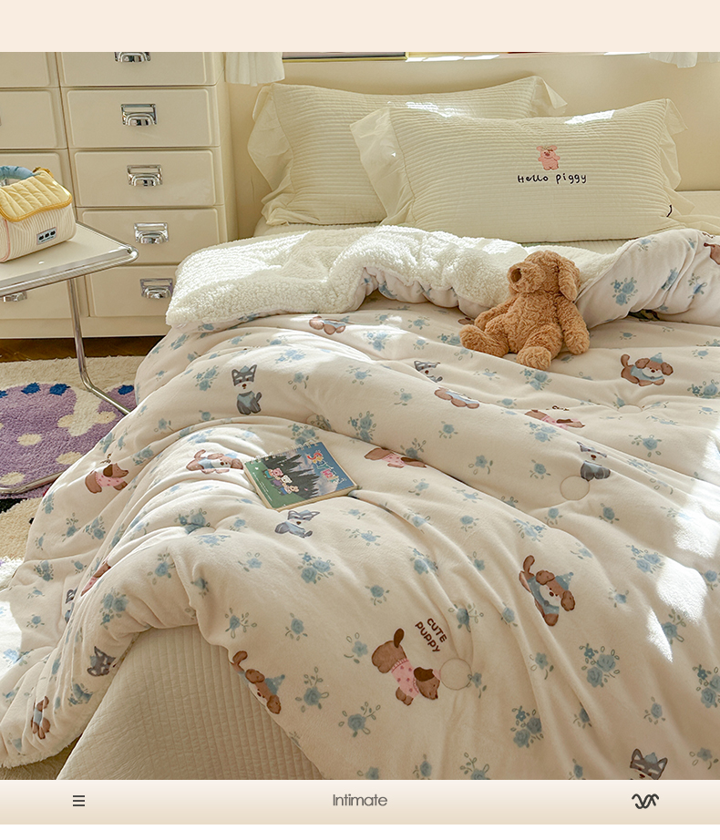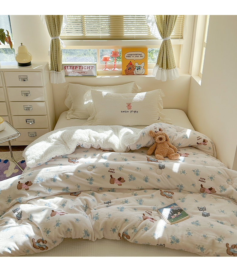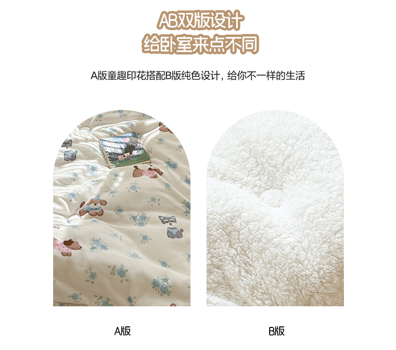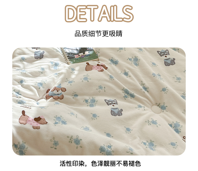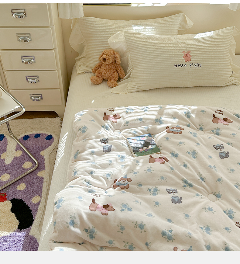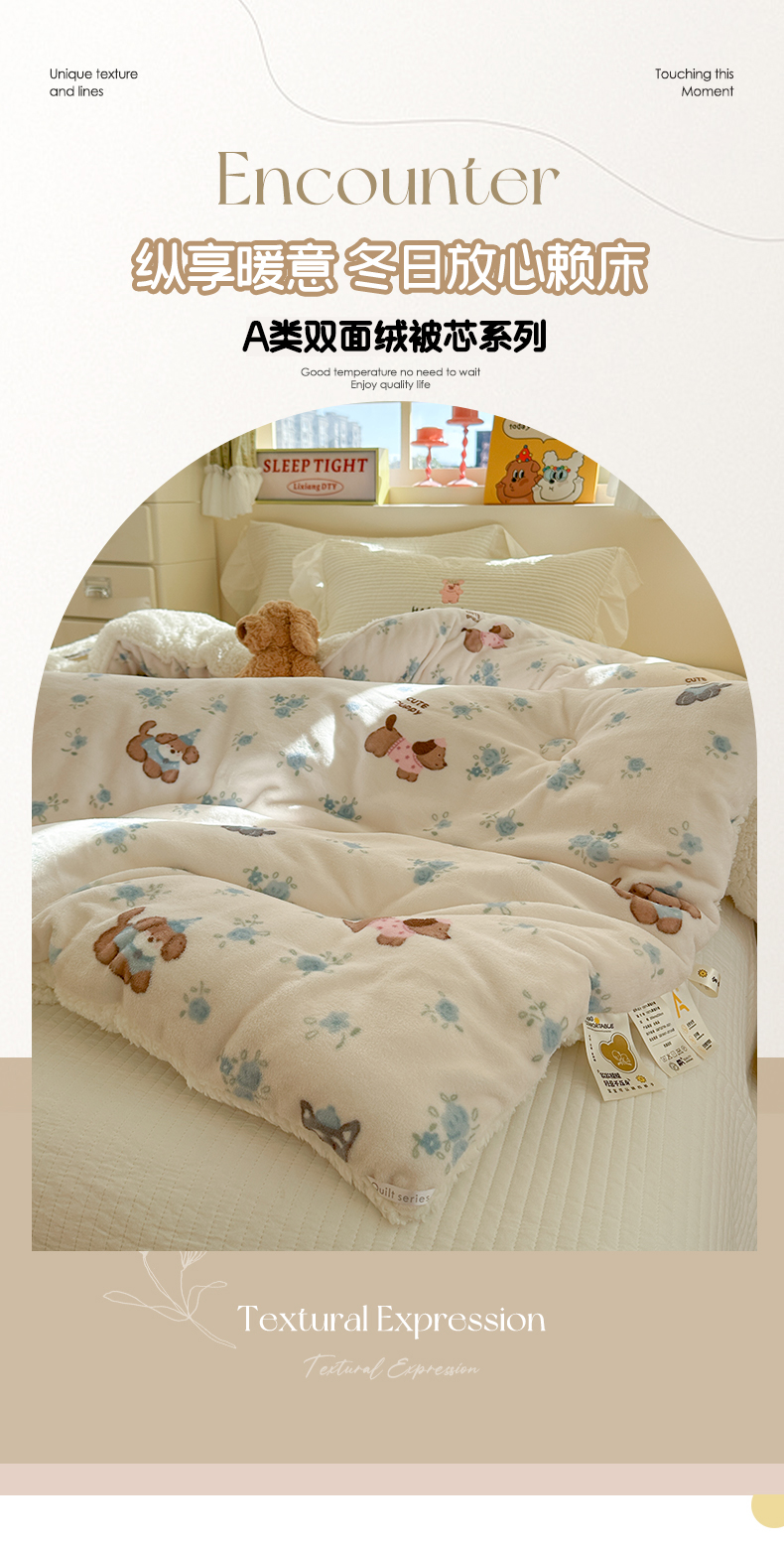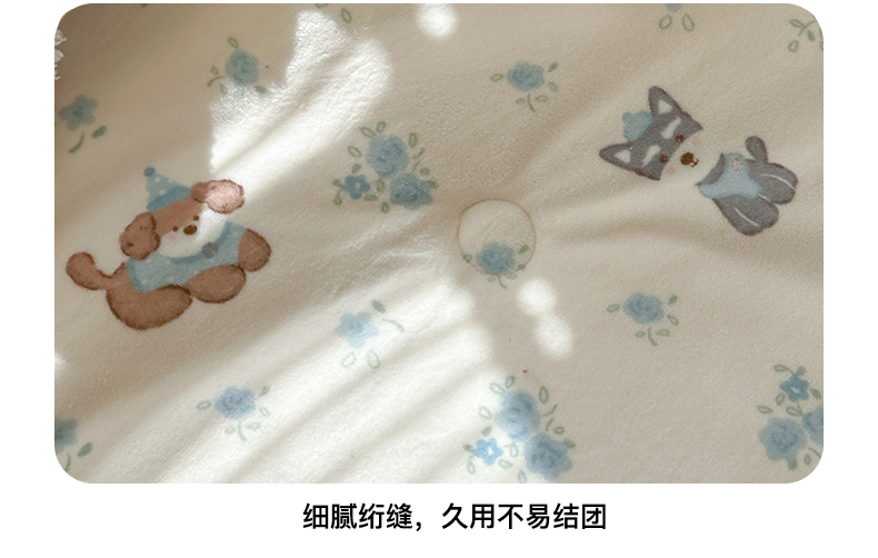 商品名称:寐居家纺 2025新款牛奶绒+羊羔绒被子被芯 花田小狗
