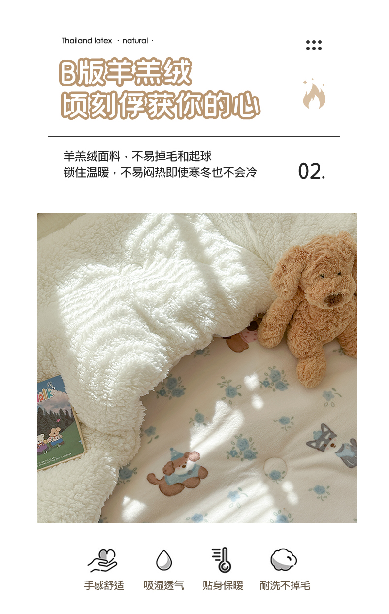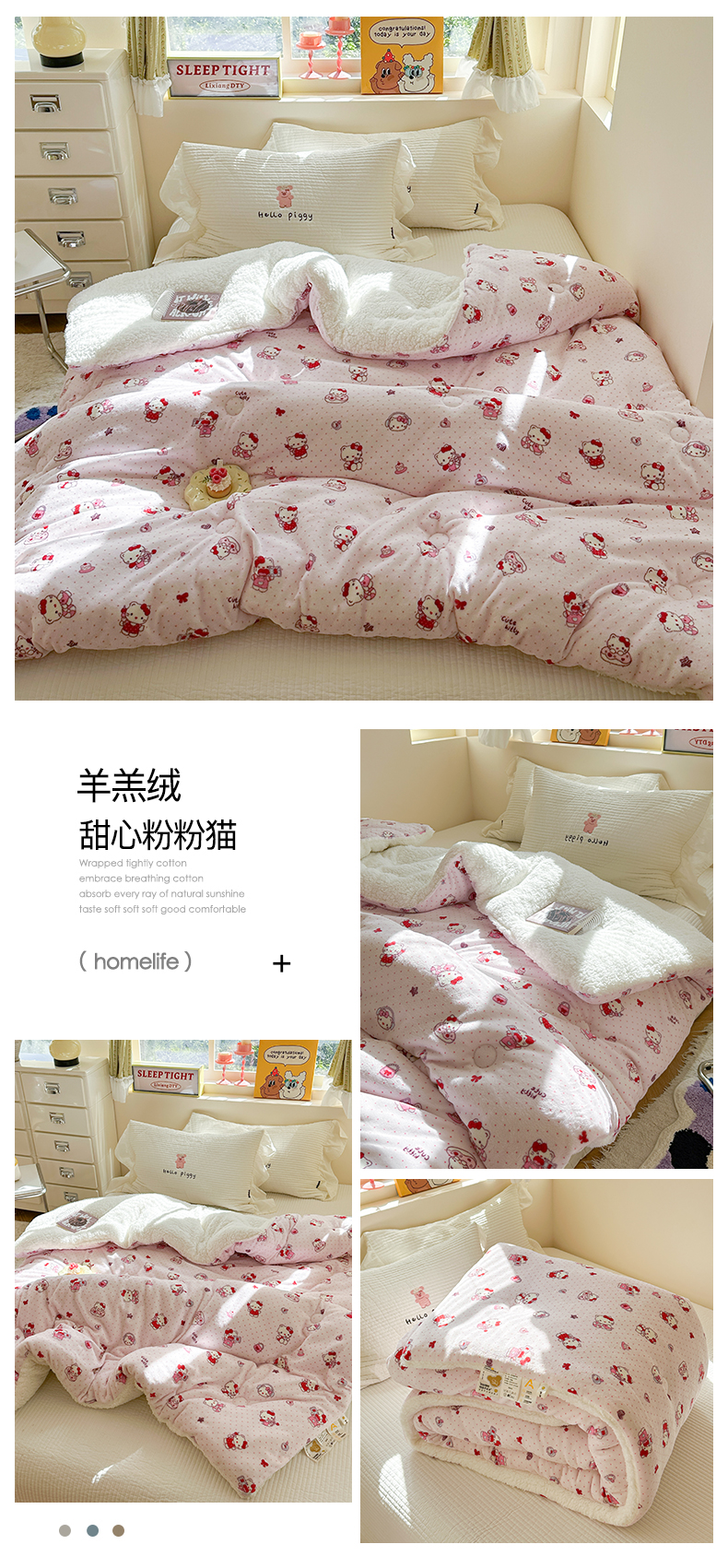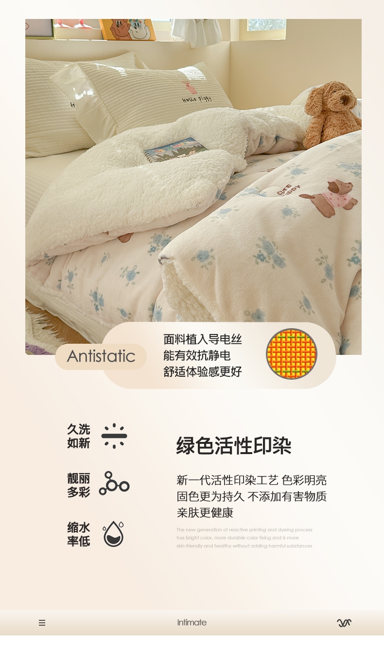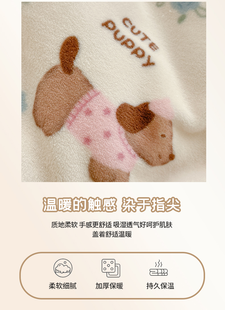 商品名称:寐居家纺 2025新款牛奶绒+羊羔绒被子被芯 花田小狗