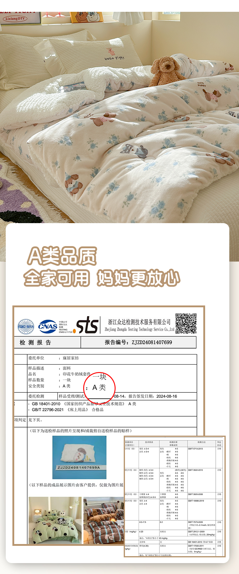 (总)寐居家纺 2025新款贴布绣高克重牛奶绒四件套,安吉拉喵,查理狗,粉糯kitty,皮皮布布