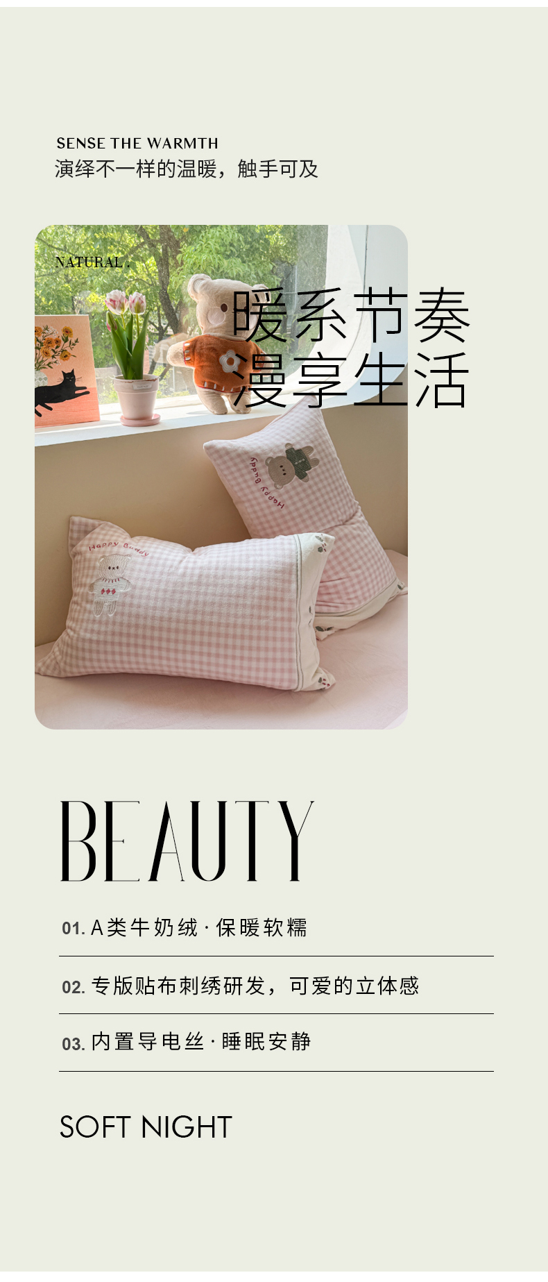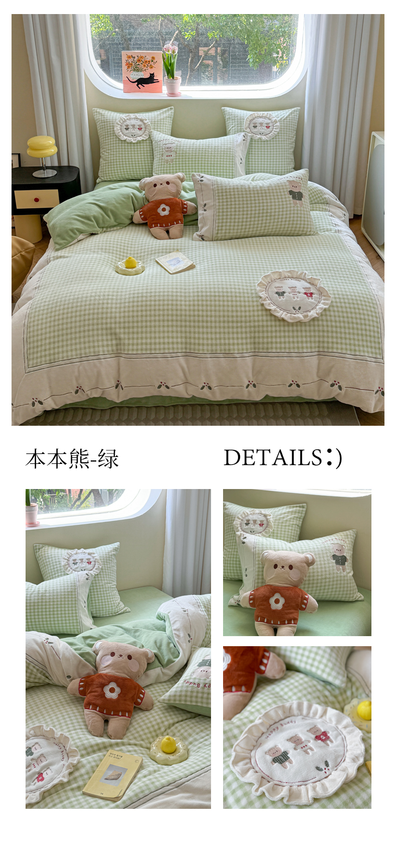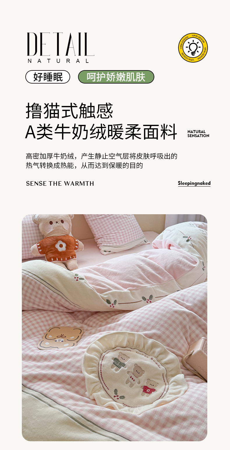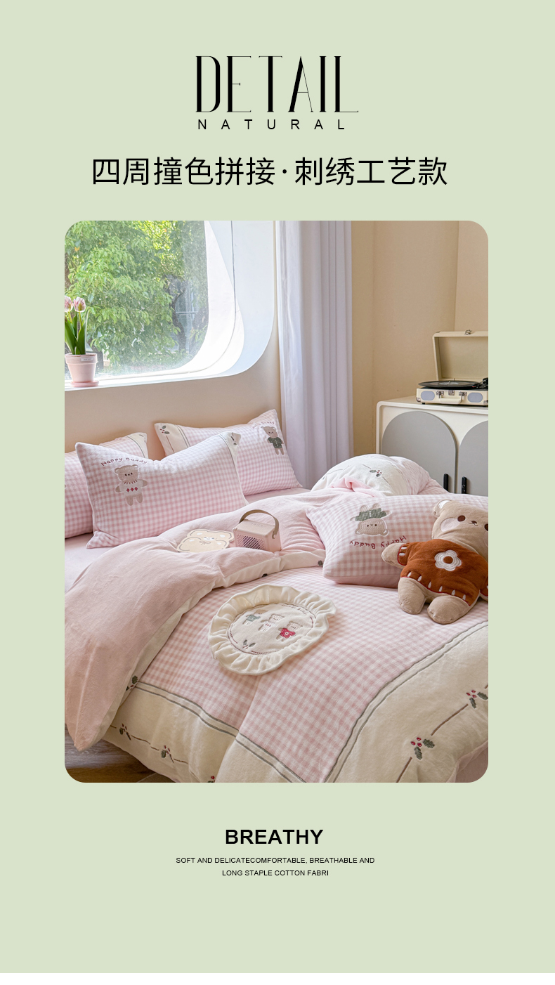 商品名称:慕晨 2025新款高克重牛奶绒卡通绣花可爱加厚牛奶绒四件套小清新小红书风直播-本本熊 本本熊-粉