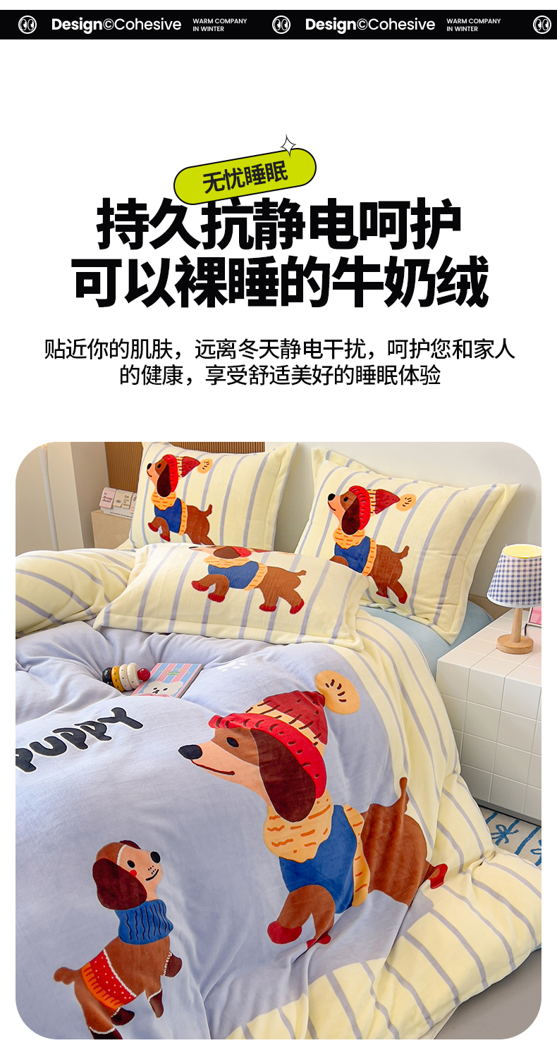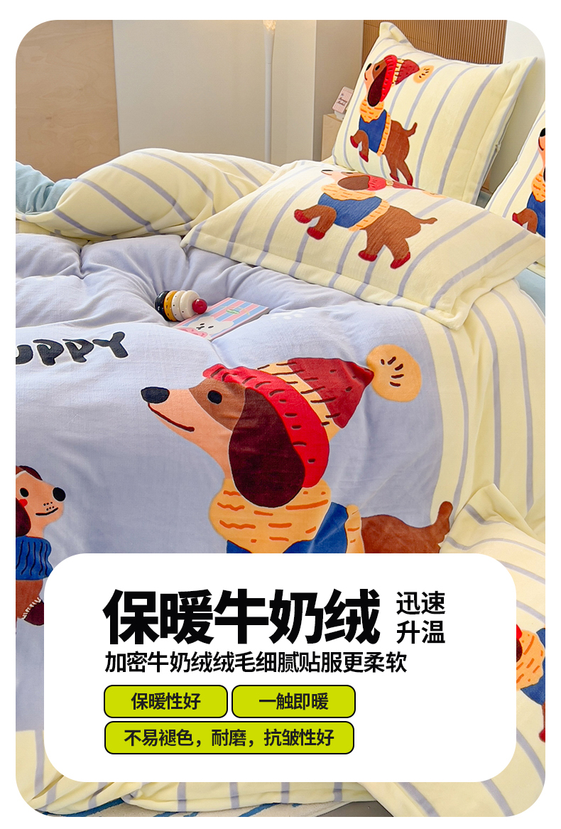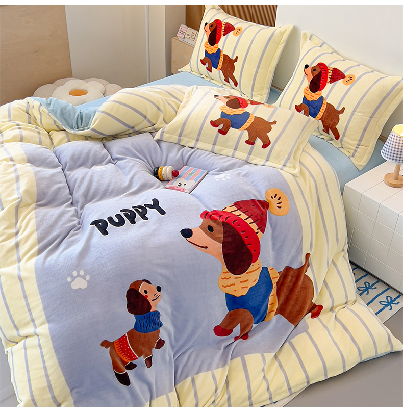 当前位置: 91家纺网 > 商品网购 > 床品套件 > 四件套 > 其它四件套 > 慕晨 2025新款卡通可爱大版印花牛奶绒加厚保暖小清新四件套直播 汪可爱