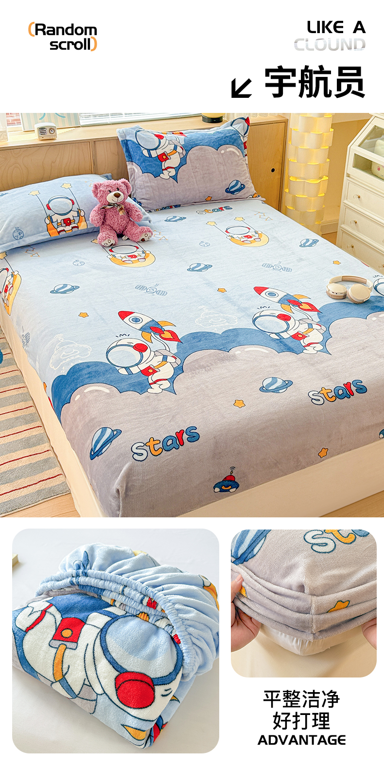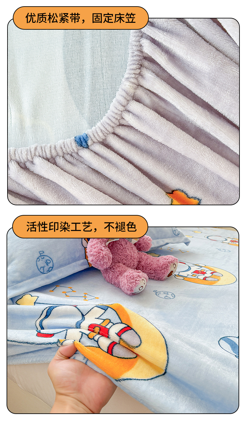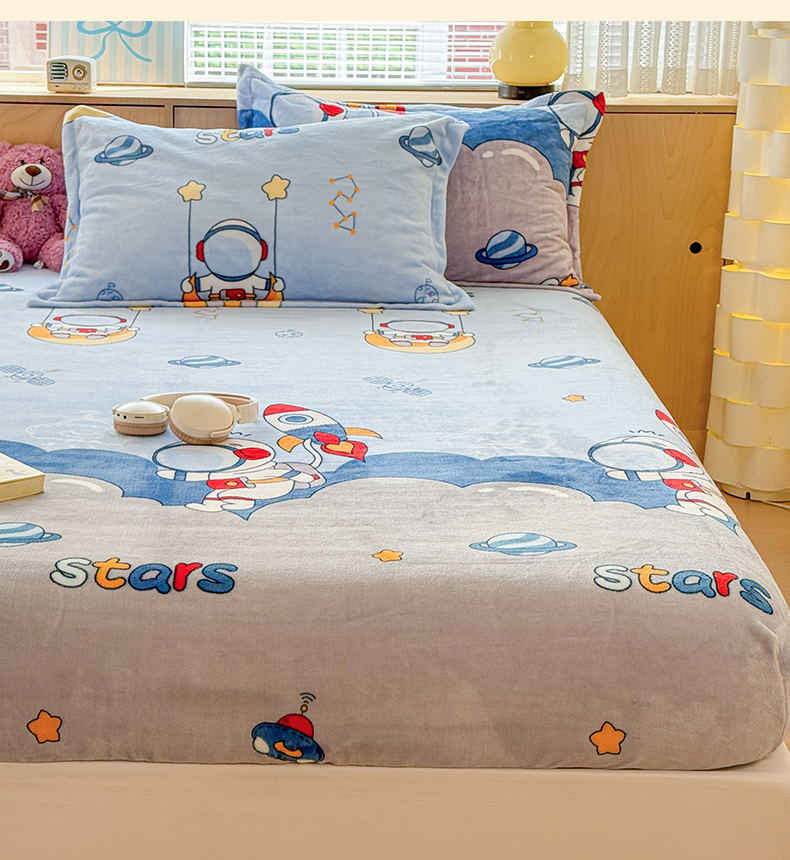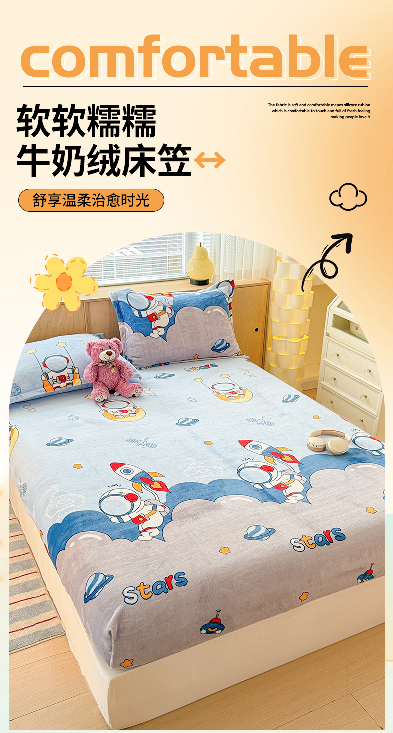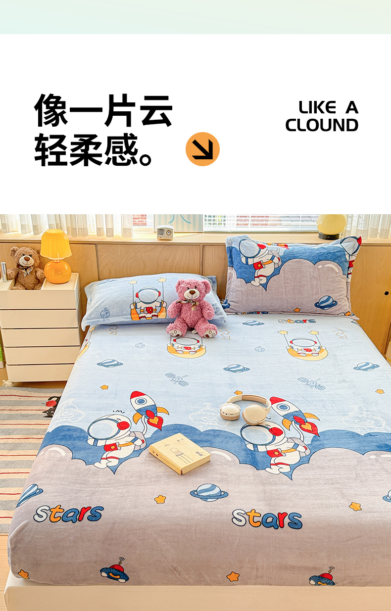 名兮家居 2025新款高克重印花牛奶绒单床笠床笠单件 宇航员