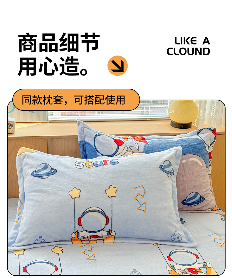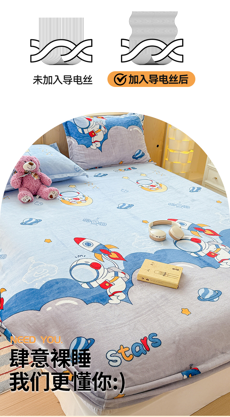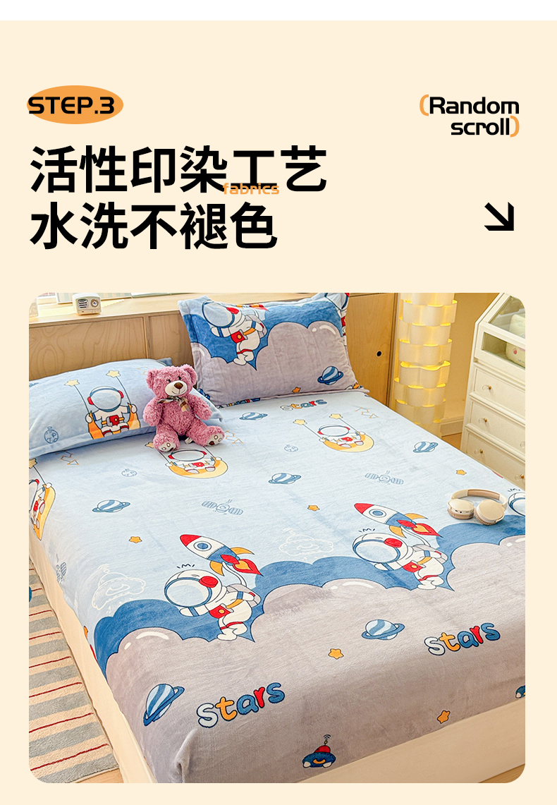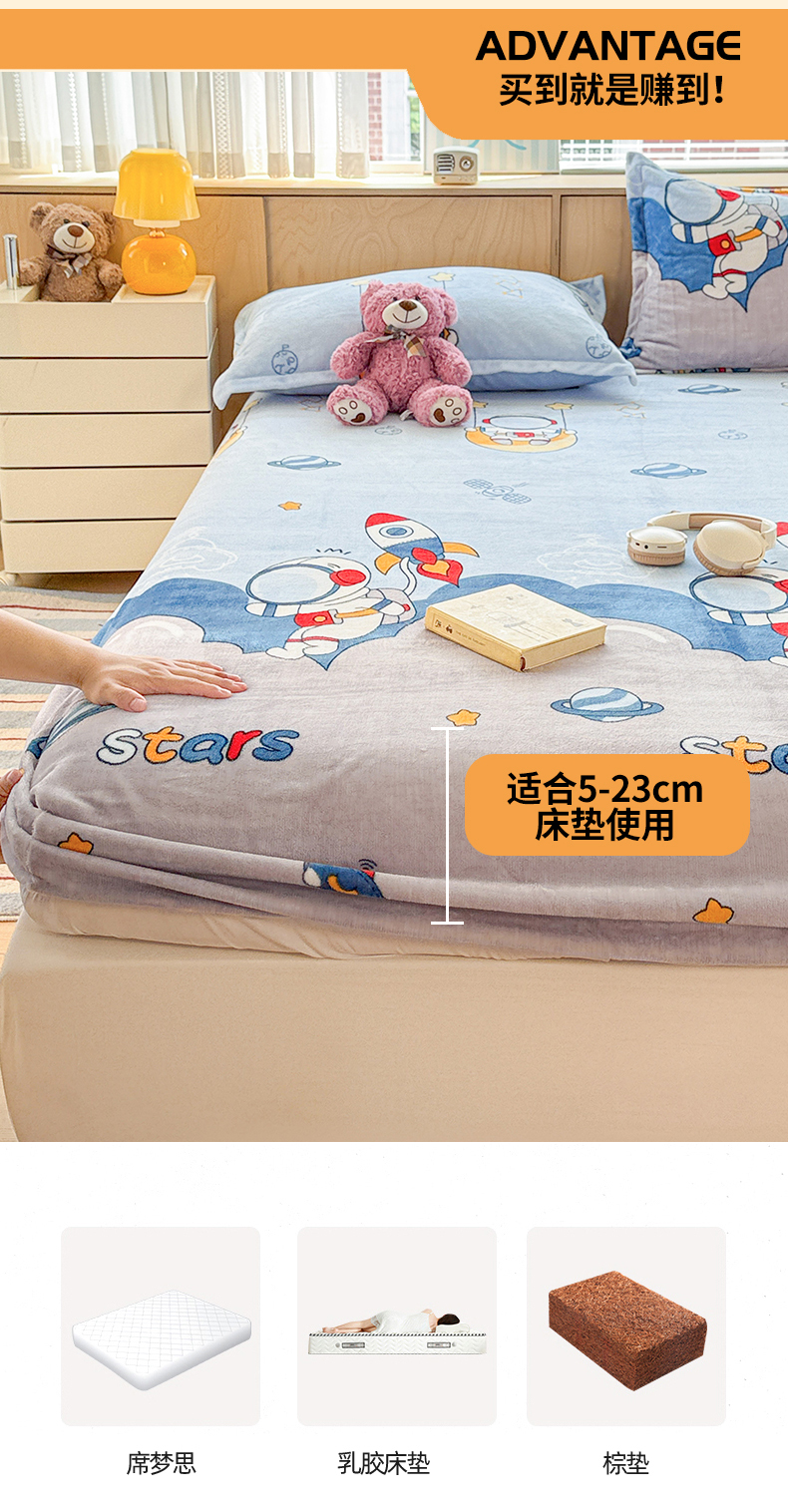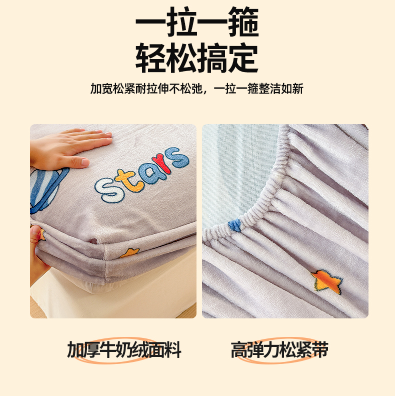 名兮家居 2025新款高克重印花牛奶绒单床笠床笠单件 宇航员