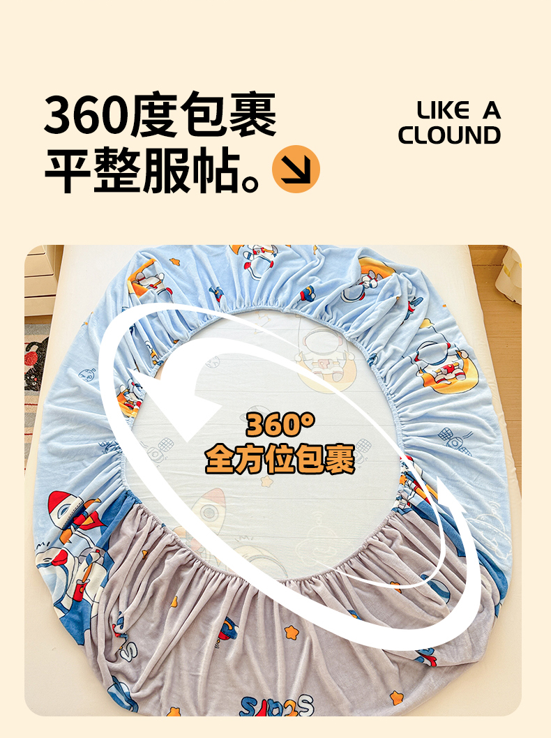 • 91家纺网 家纺一手货源 找家纺 名兮家居 2025新款高克重印花牛奶绒单床笠床笠单件 宇航员