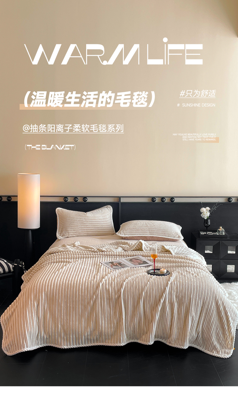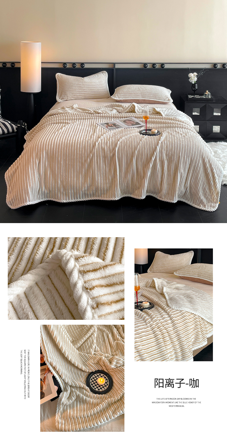 小叮当家纺仓储工厂店 2025新款亲肤舒适成品抽条阳离子毛毯毯子-阳离子 阳离子-粉