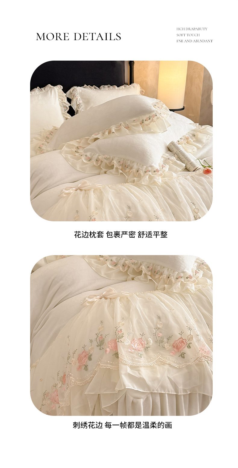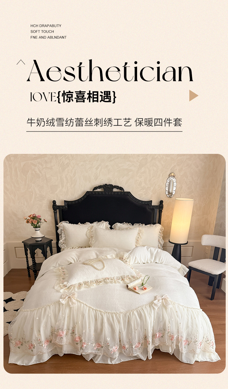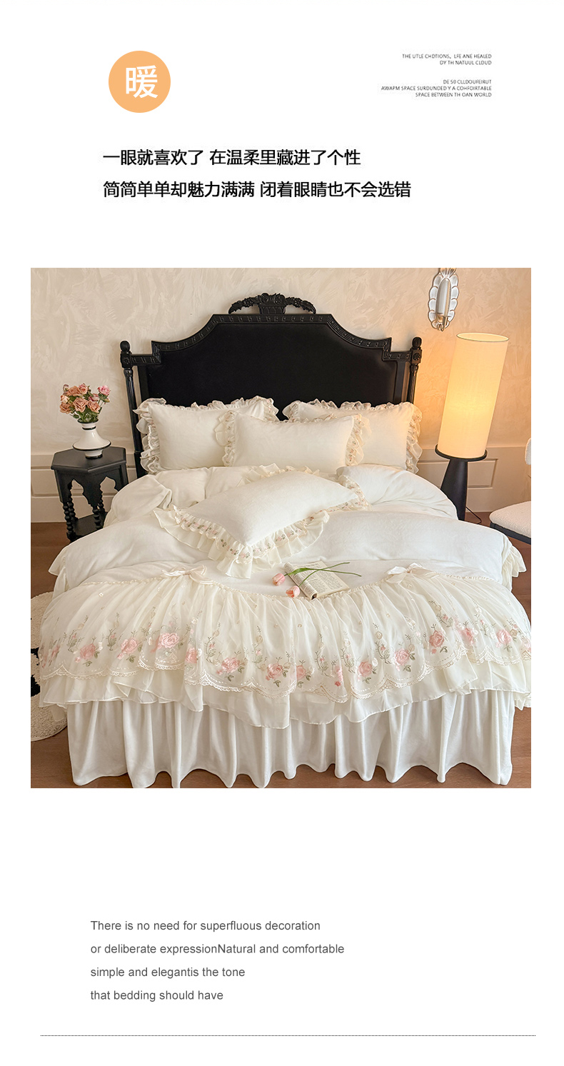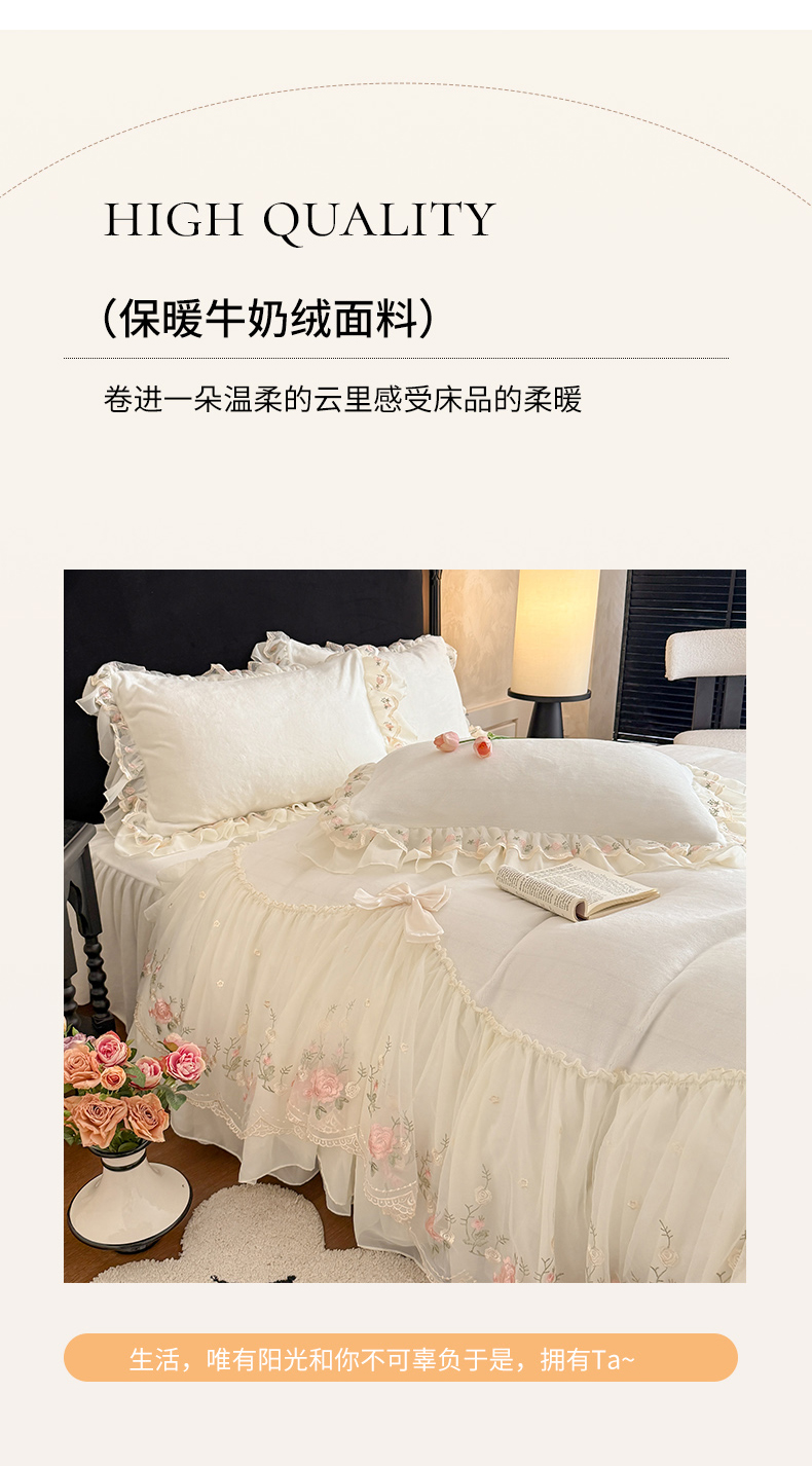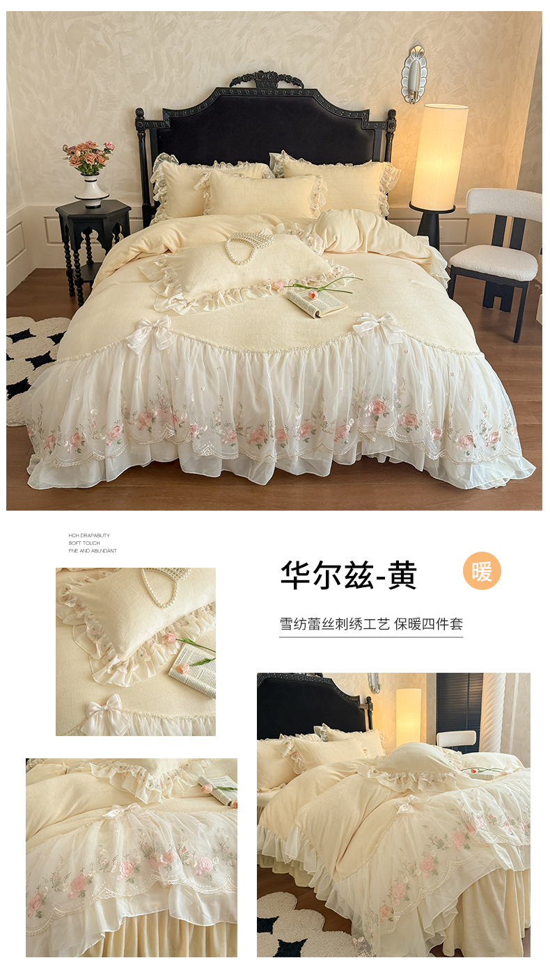 当前位置: 91家纺网 > 商品网购 > 床品套件 > 四件套 > 牛奶绒四件套 > 富盛家纺 2025新款牛奶绒床裙款蕾丝刺绣四件套韩版法式公主风四件套--华尔兹系列 华尔兹-白