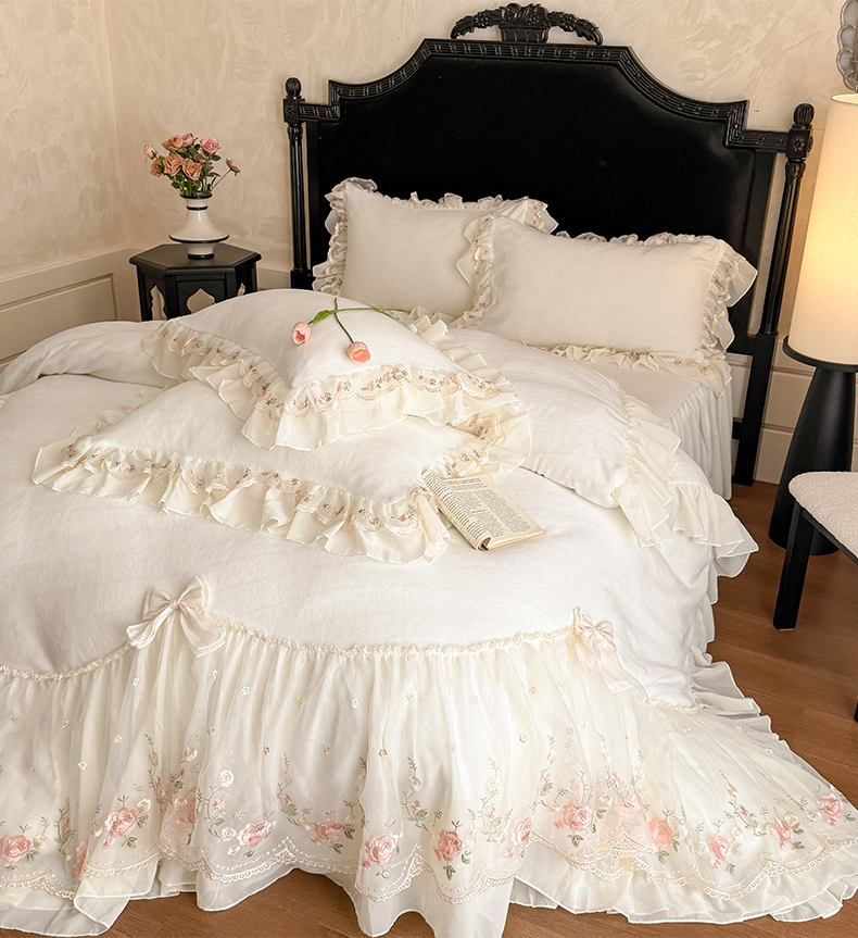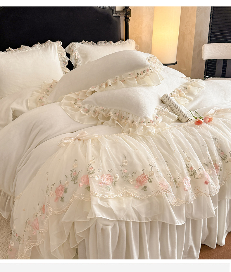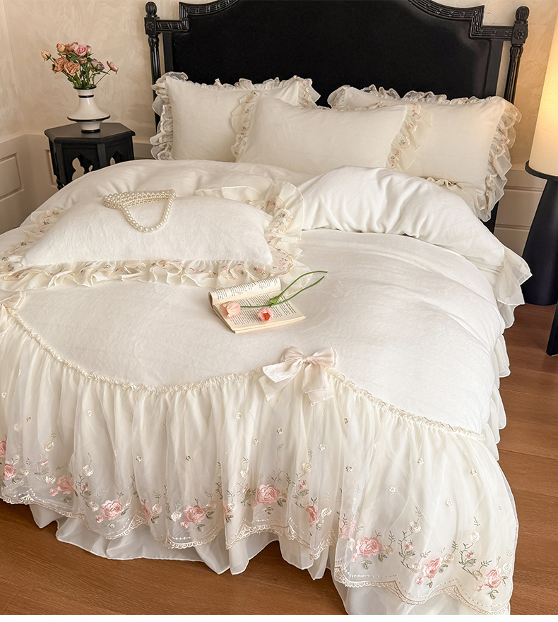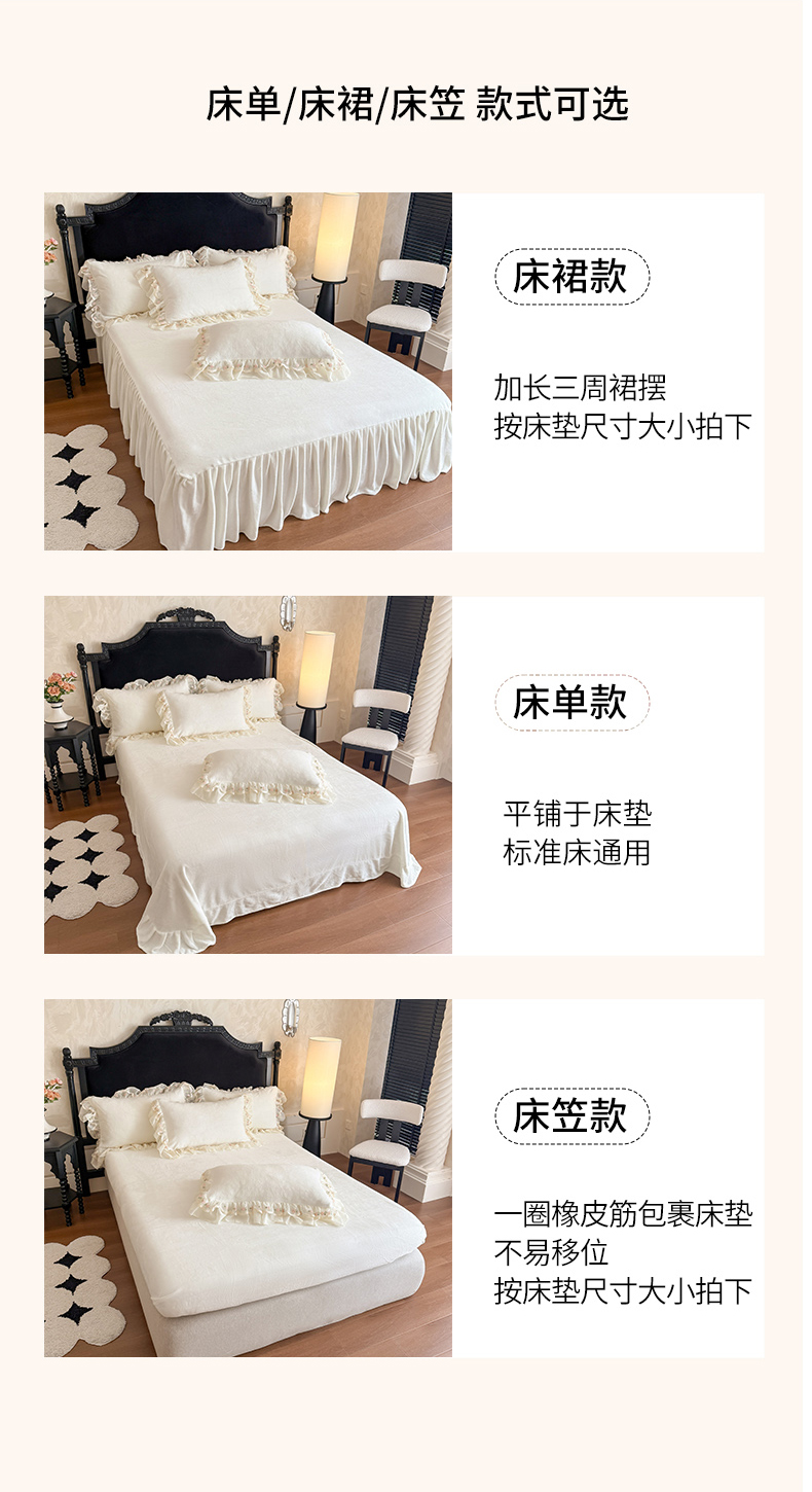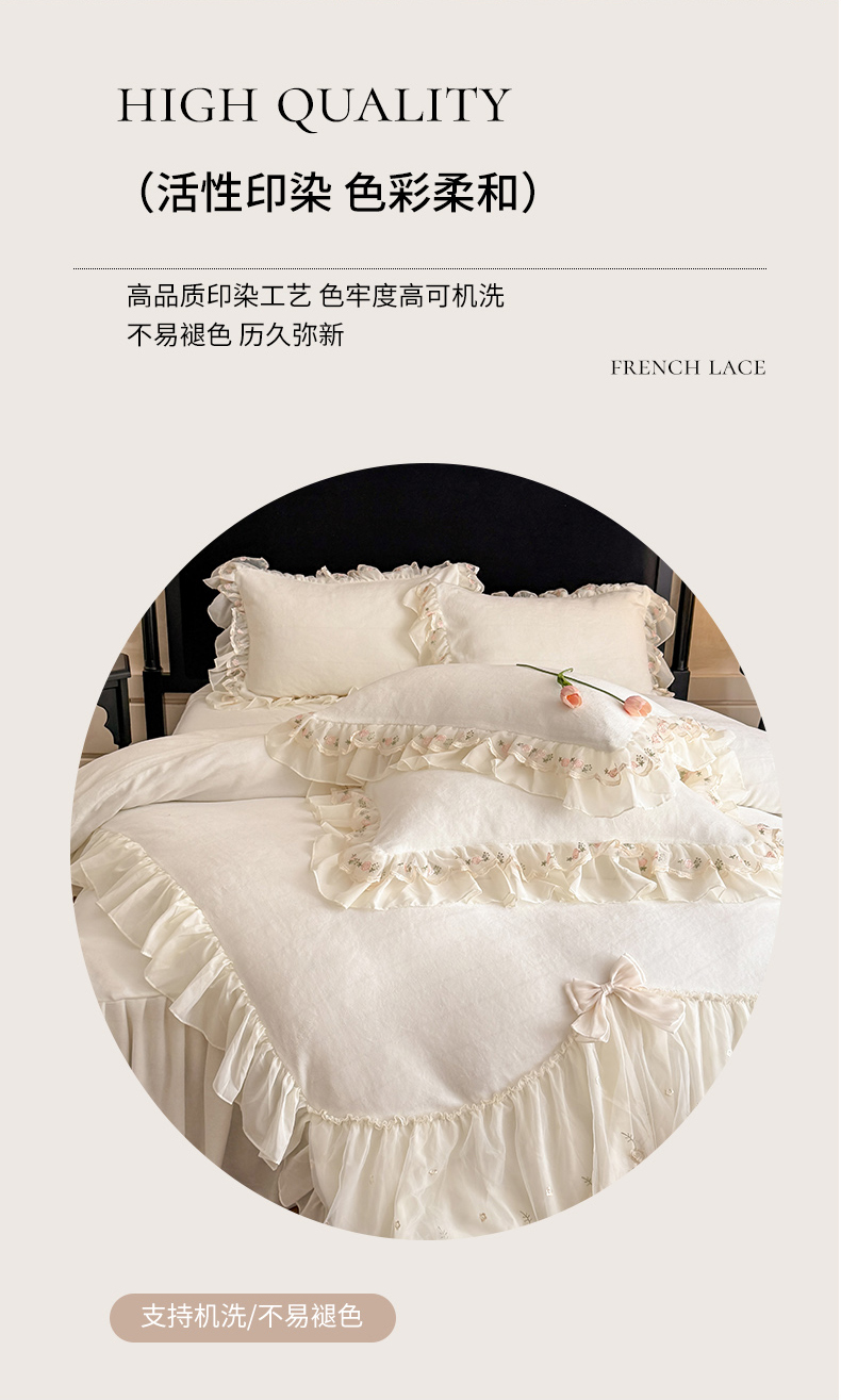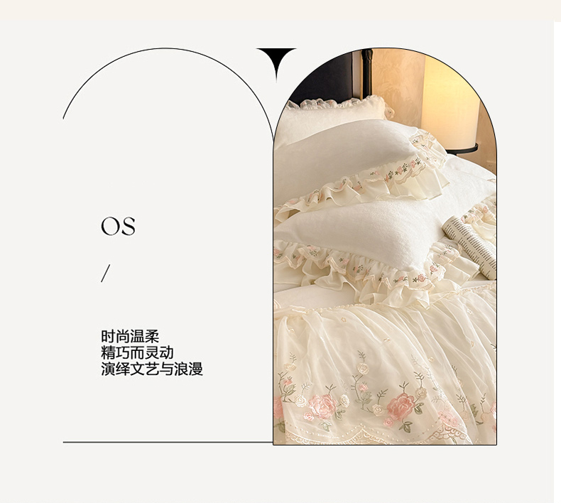 当前位置: 91家纺网 > 商品网购 > 床品套件 > 四件套 > 牛奶绒四件套 > 富盛家纺 2025新款牛奶绒床裙款蕾丝刺绣四件套韩版法式公主风四件套--华尔兹系列 华尔兹-白