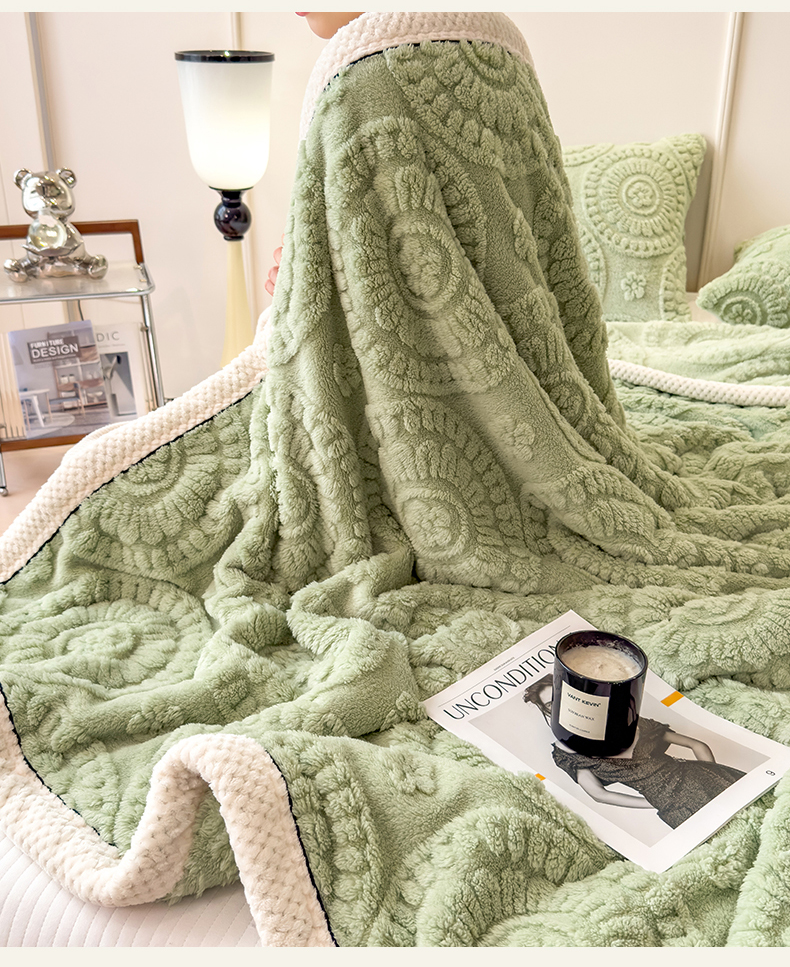 乐家欣 2025新款A类花朵塔芙绒毛毯 花朵-桑绿