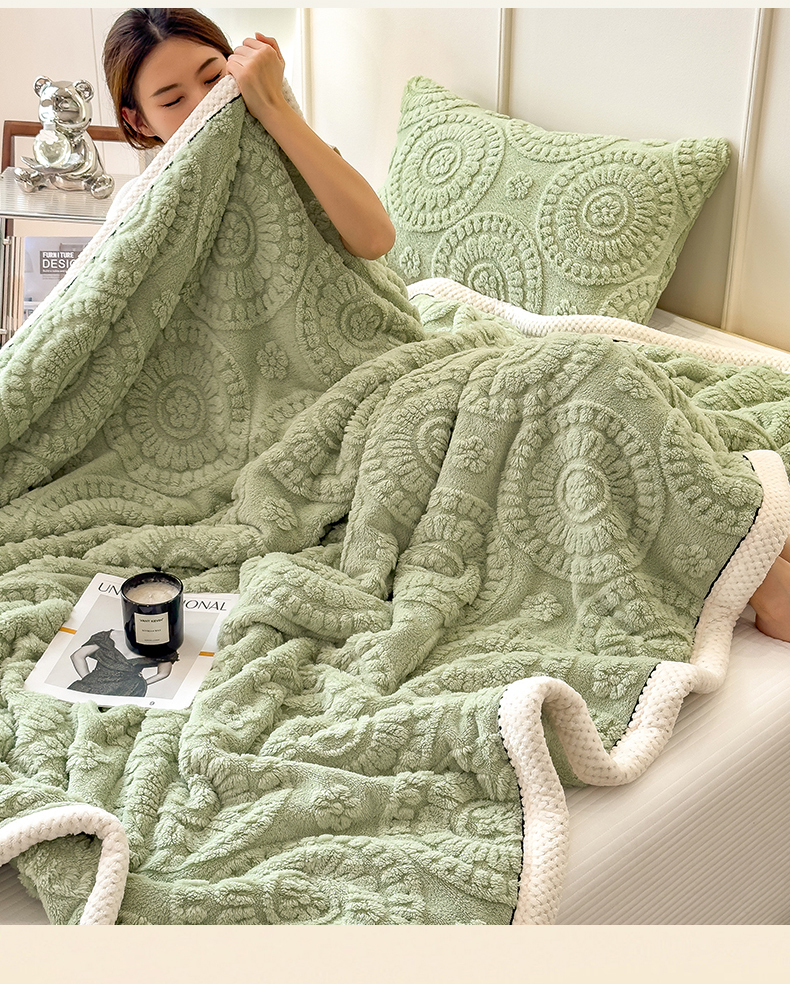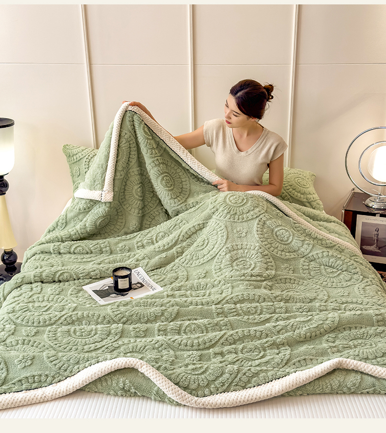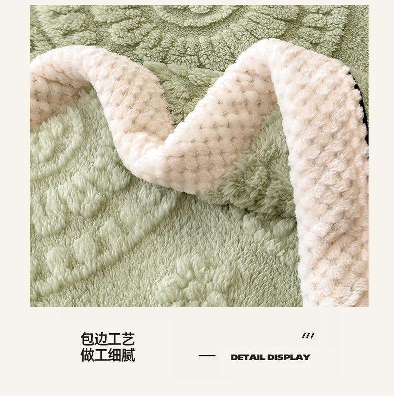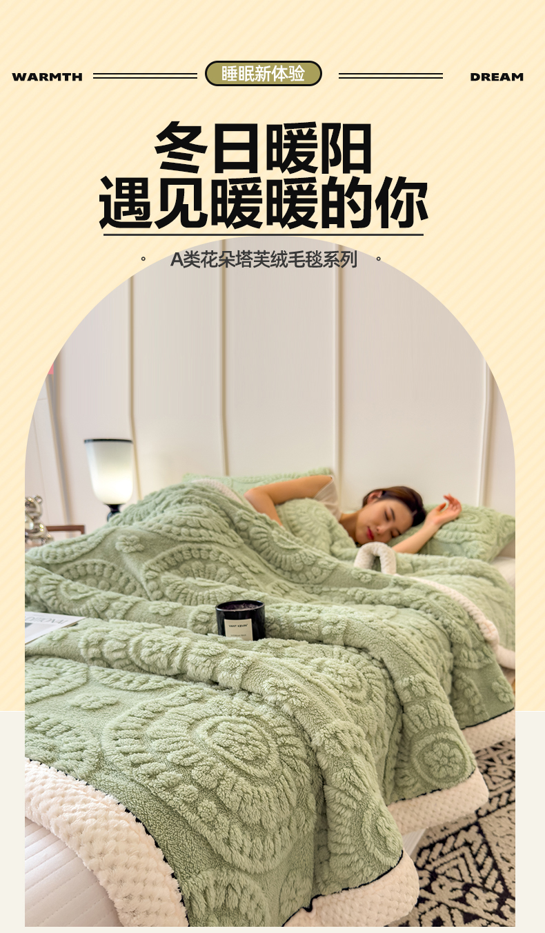 商品名称:乐家欣 2025新款A类花朵塔芙绒毛毯 花朵-桑绿