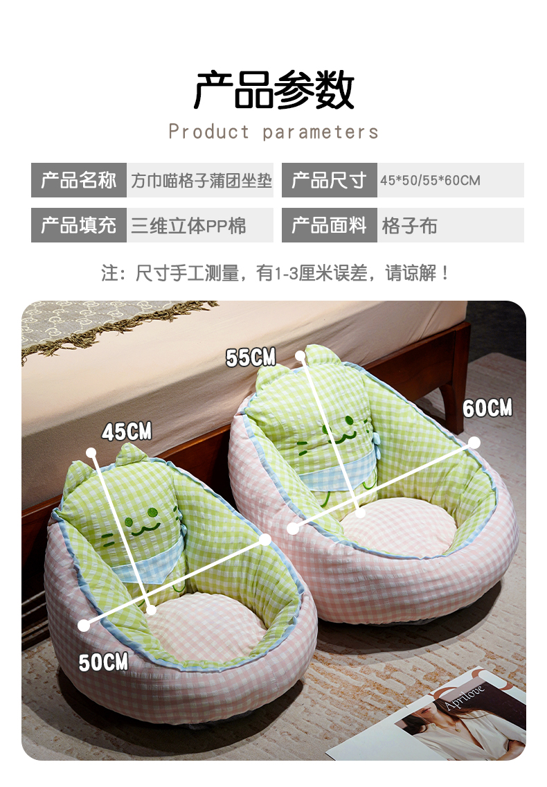 当前位置: 91家纺网 > 商品网购 > 居家日用 > 靠垫/抱枕 > 仟亿莱 2025新款三维立体PP棉方巾喵格子蒲团坐垫 蒲团紫格喵