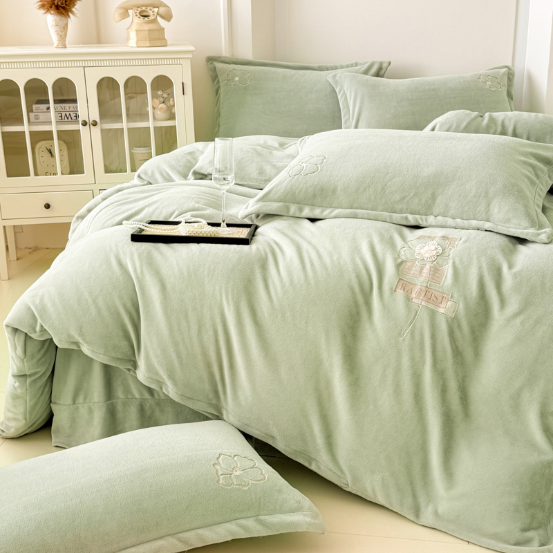 (总)保罗圣迪奥 2024新款刺绣雪绒绒四件套-维也纳,维也纳-爱玛橙,维也纳-宾利蓝,维也纳-抹茶绿,维也纳-香槟