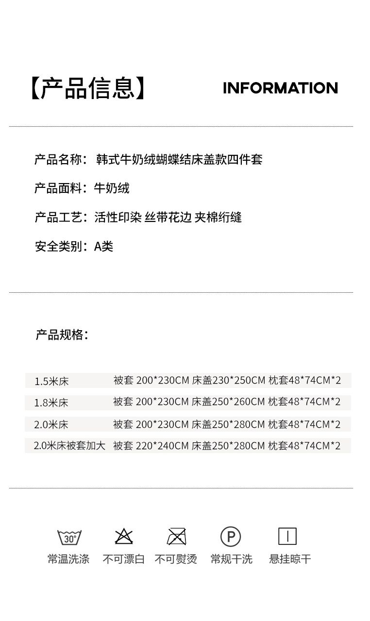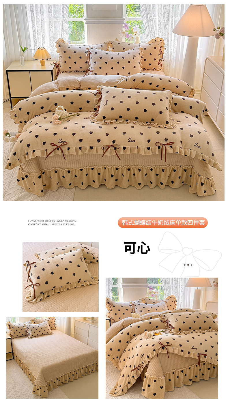 商品名称:韩约家纺 2025新款韩式蝴蝶结牛奶绒床盖款四件套 可心