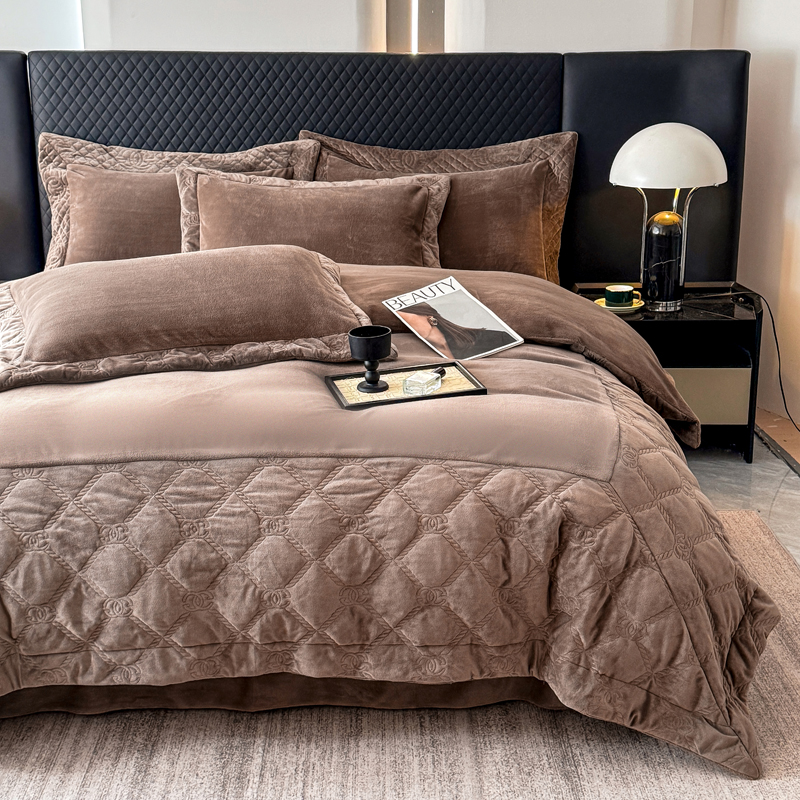 (总)保罗圣迪奥 2025新款250克全消光抗绣工艺四件套-沐凡系列二,豆沙,卡其,深灰,深咖,紫色