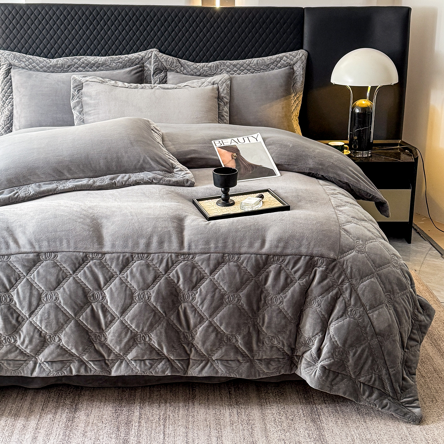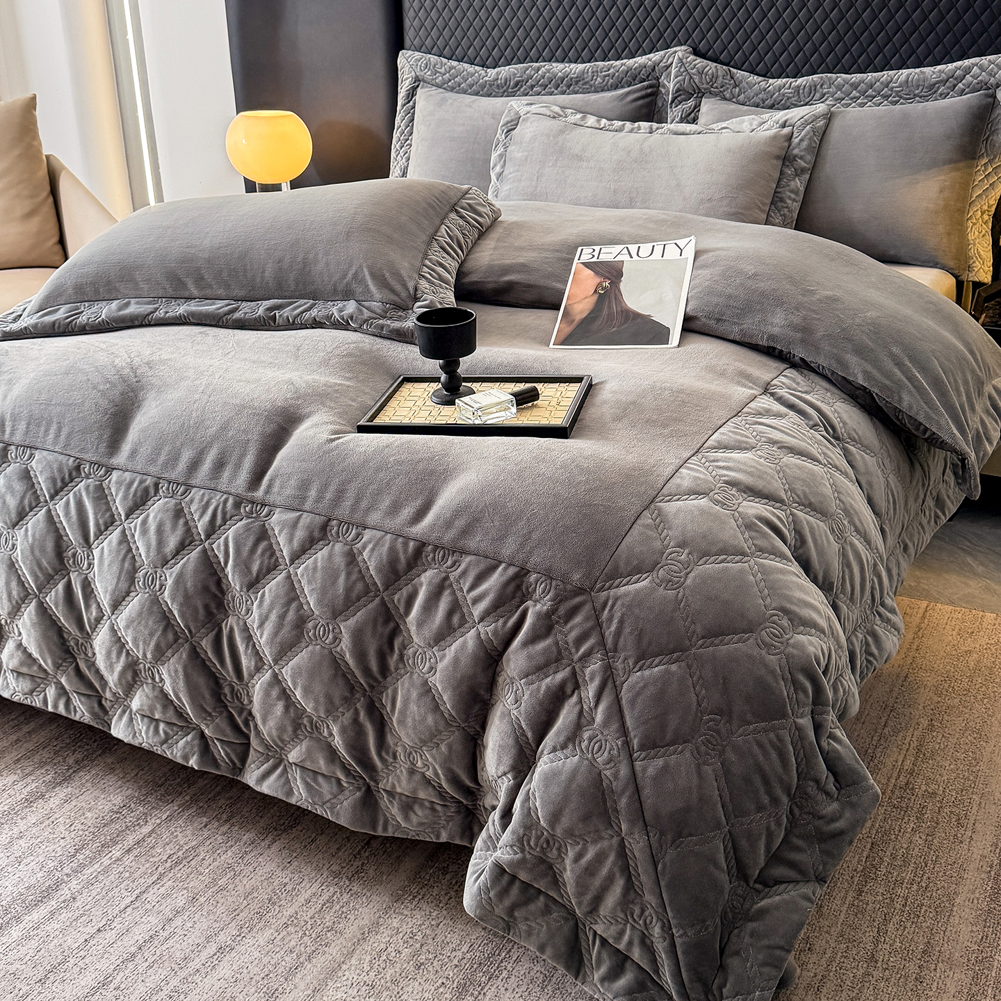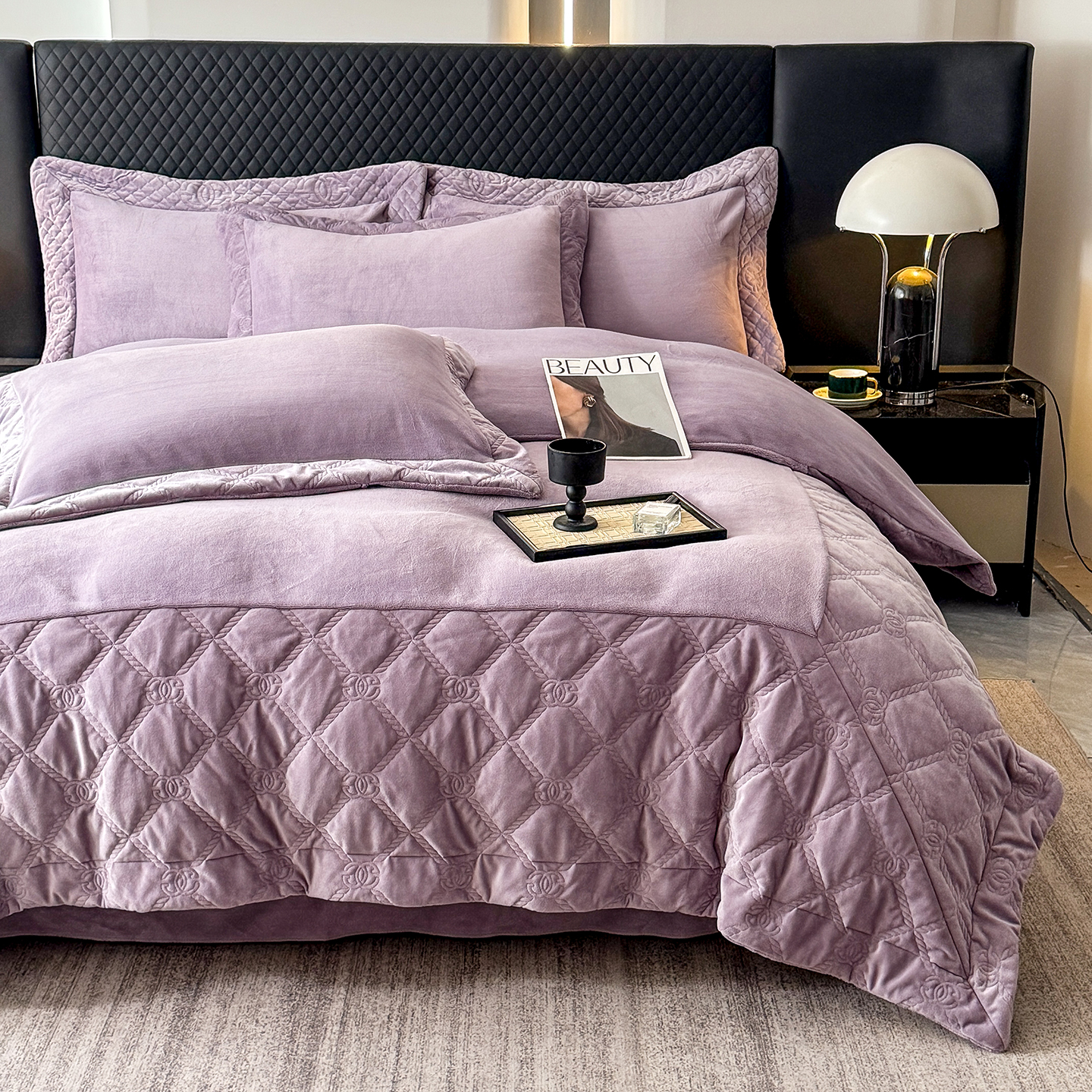 (总)保罗圣迪奥 2025新款250克全消光三拼角双C四件套-沐凡系列一,粉色,卡其,深灰色,深咖色,紫色