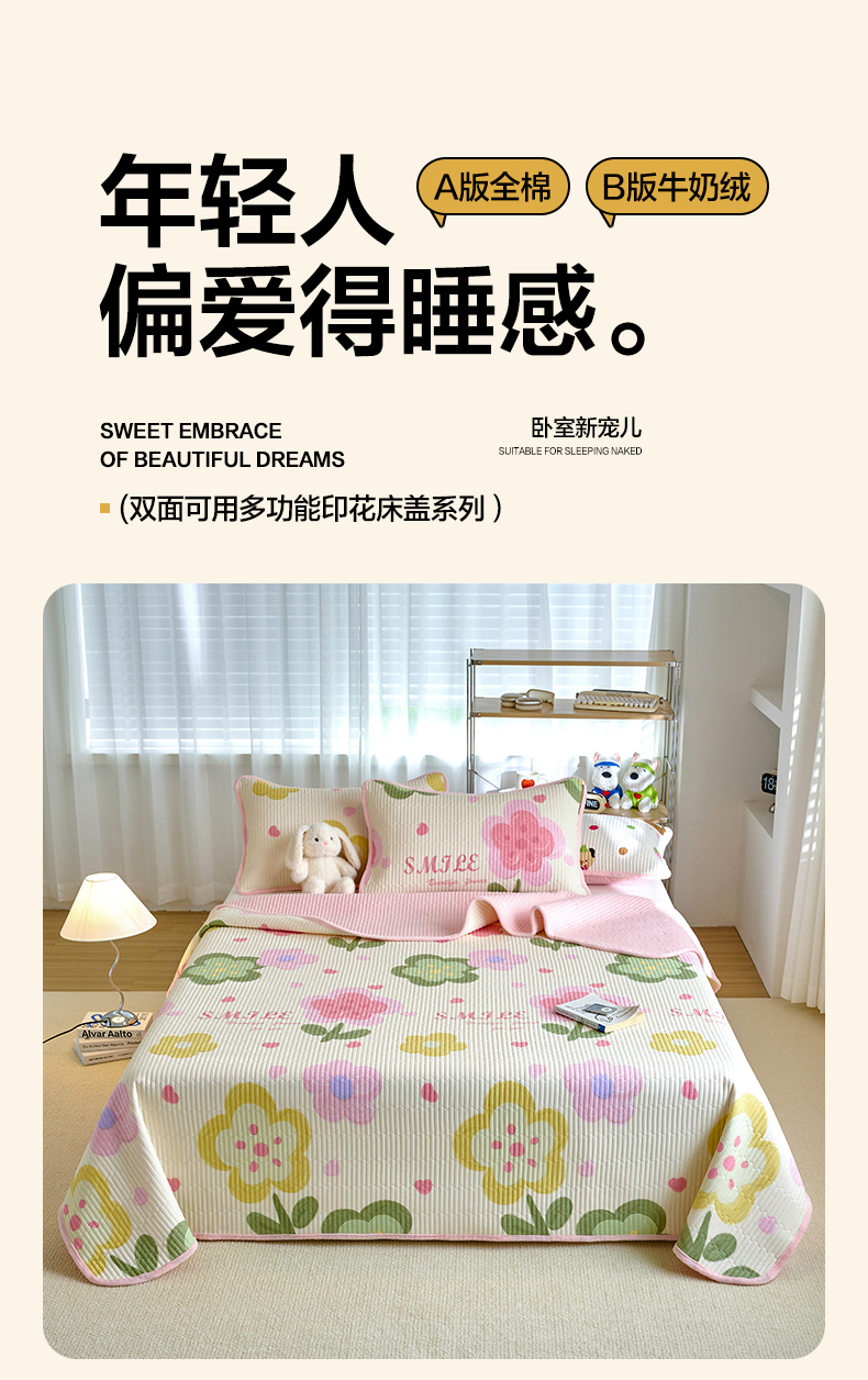 小叮当家纺仓储工厂店 2025新款A版全棉B版牛奶绒床盖系列单床盖床盖单件 贝利花都(A棉B绒)