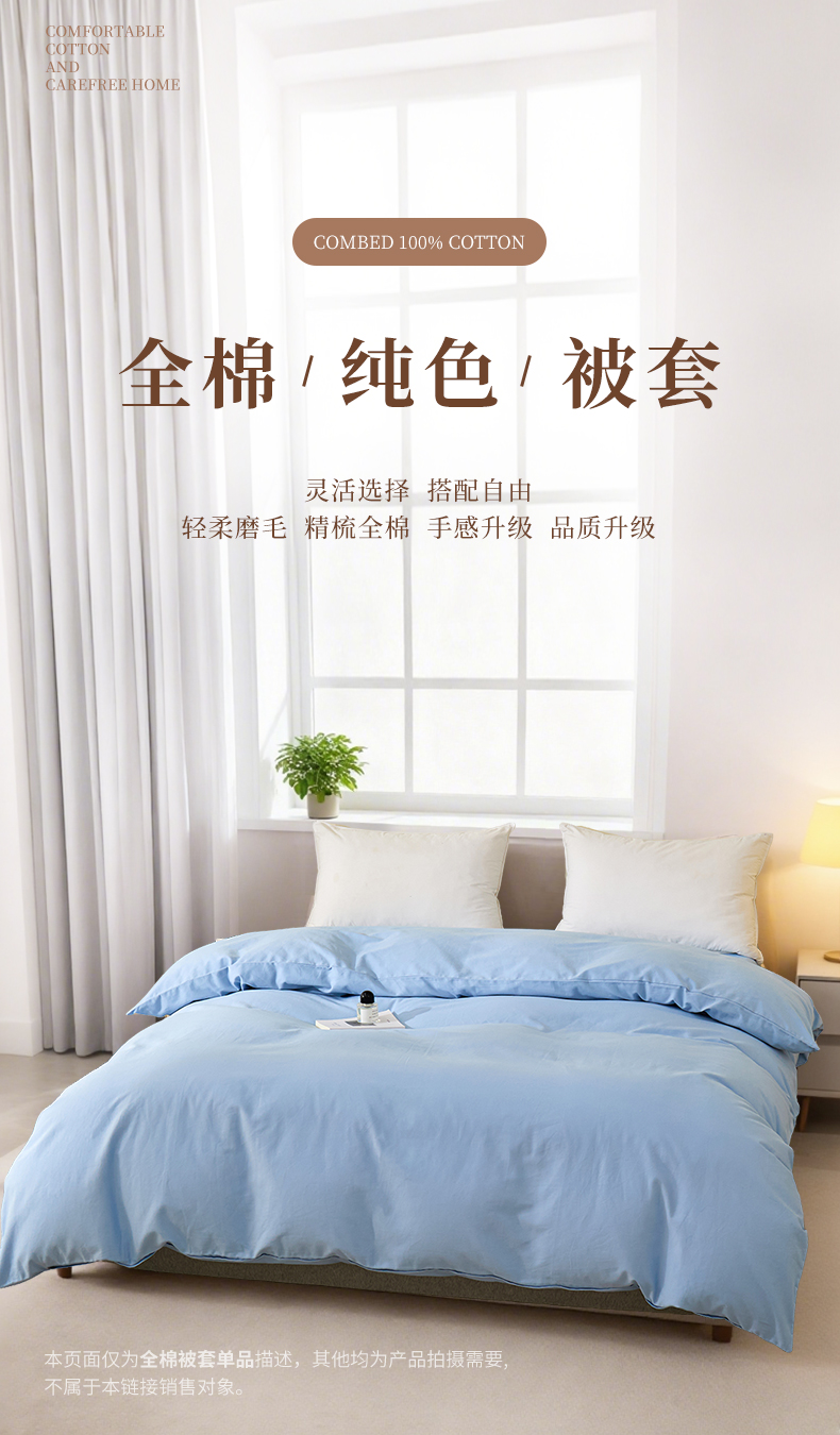 商品名称:元元家居(元元被业) 2025新款全棉纯棉磨毛纯色单被套 景泰蓝