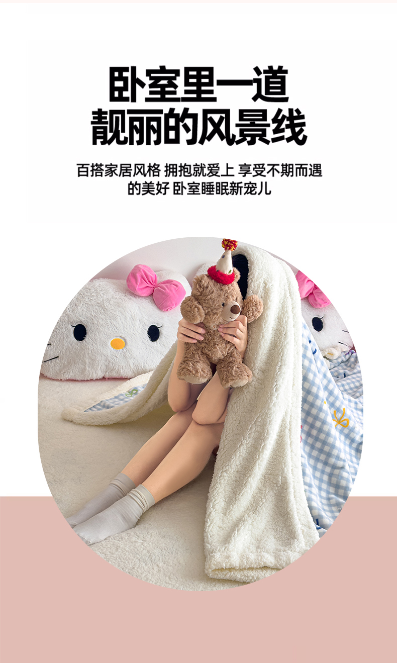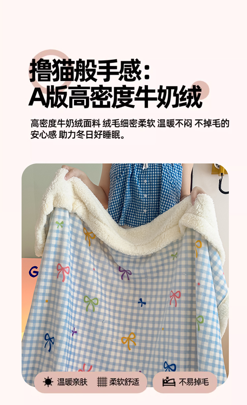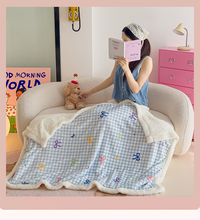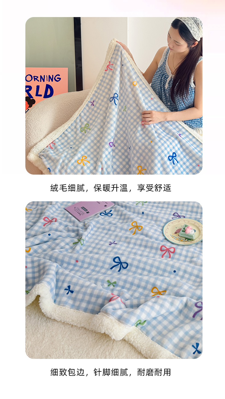 艾特你 2025新款ins羊羔绒牛奶绒可被套休闲毯单被套-毯子图 彩色物语蓝