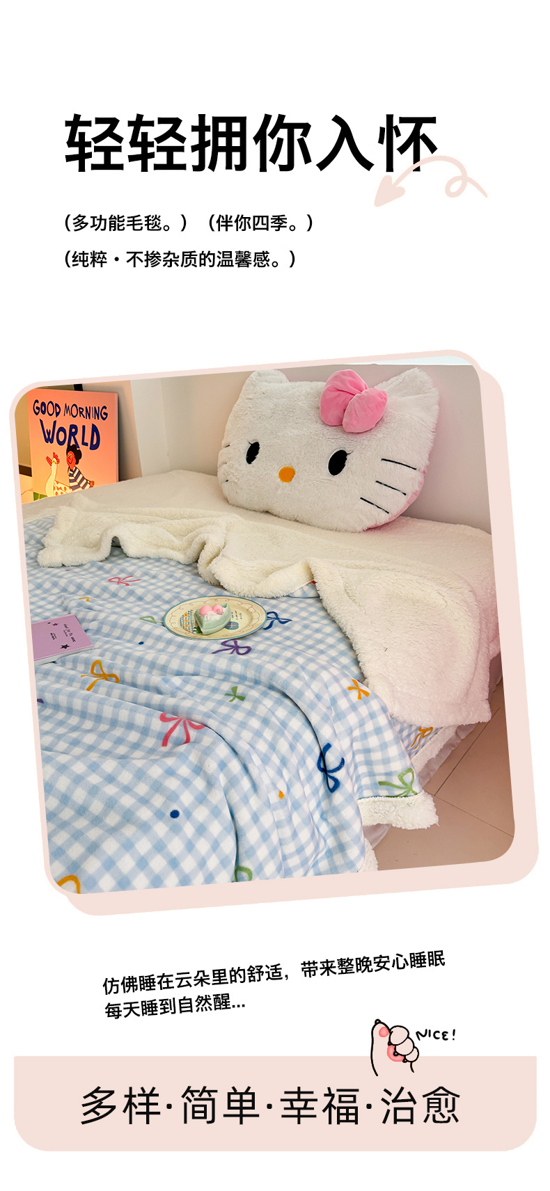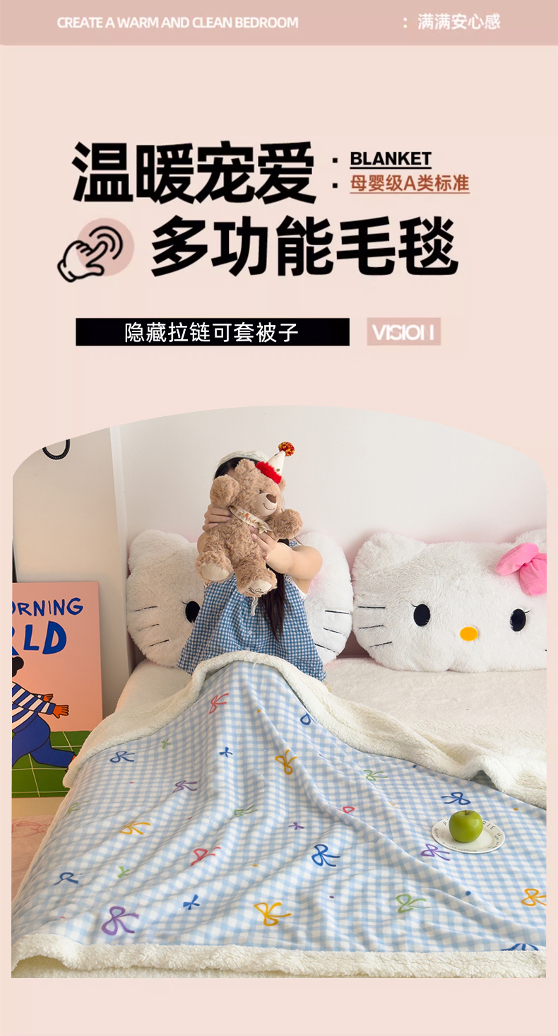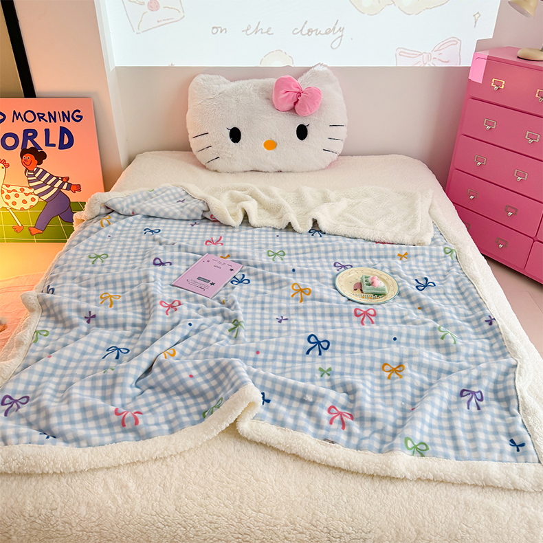 艾特你 2025新款ins羊羔绒牛奶绒可被套休闲毯单被套-毯子图 彩色物语蓝