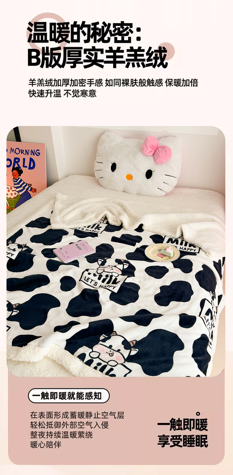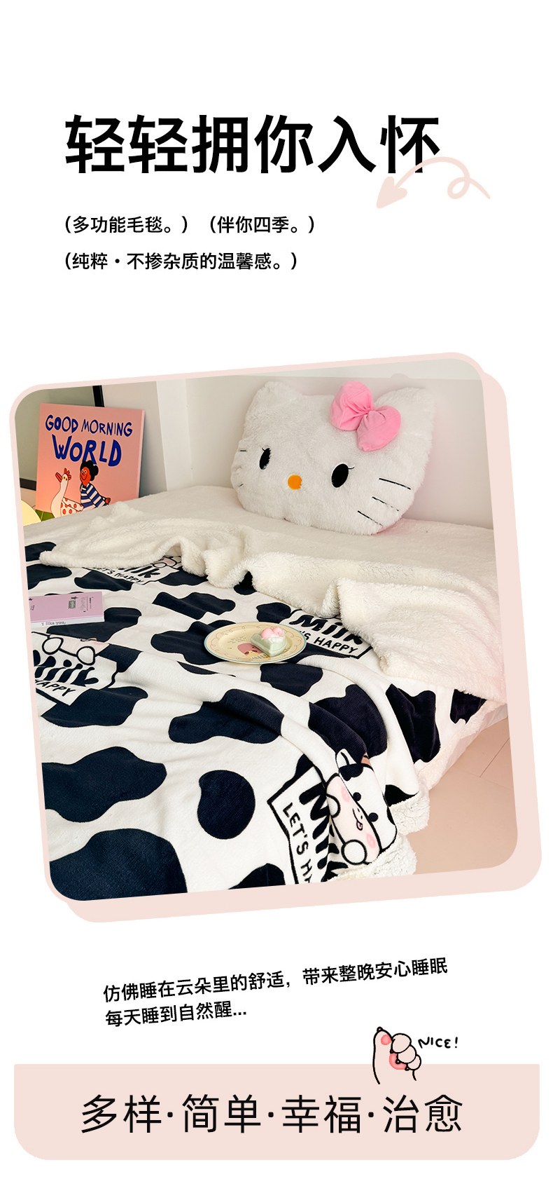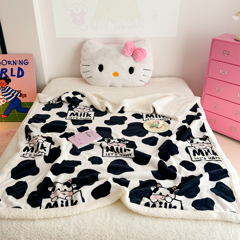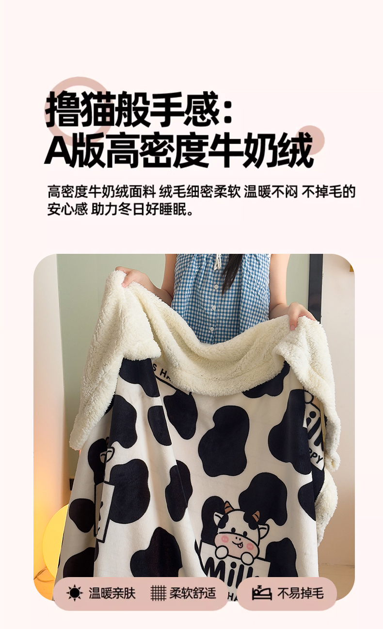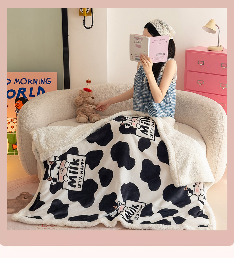 艾特你 2025新款ins羊羔绒牛奶绒可被套休闲毯单被套-毯子图 奶牛
