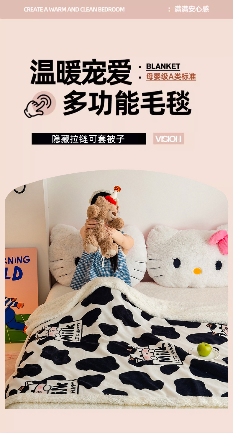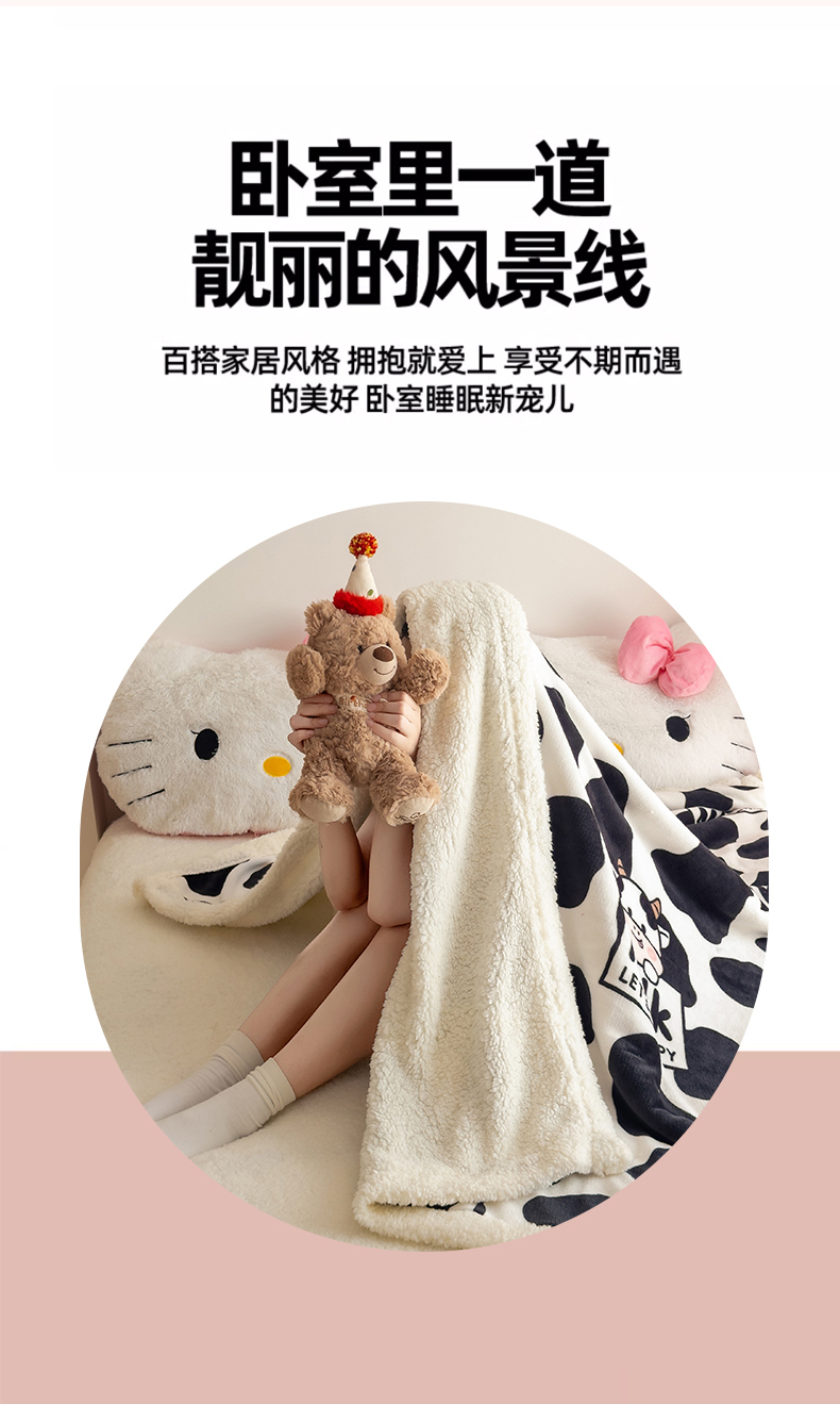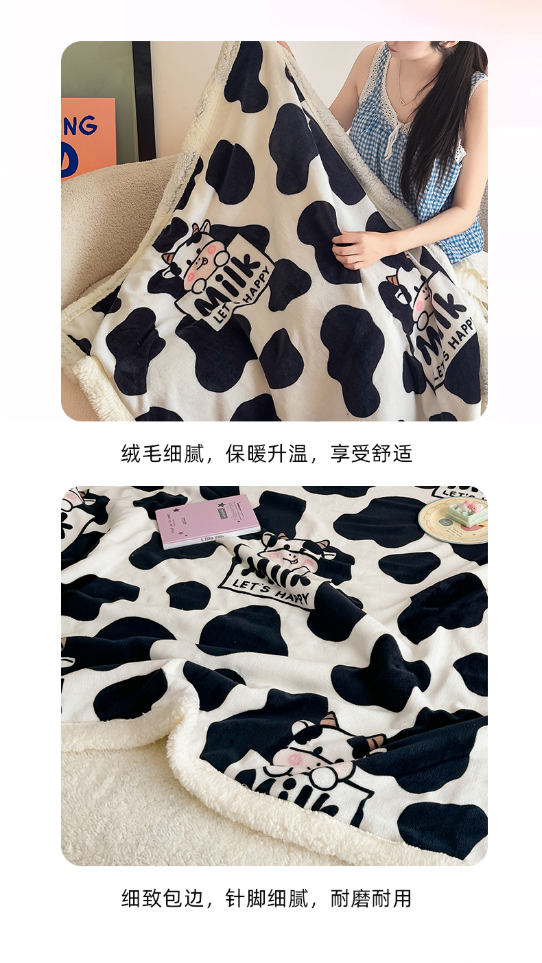 商品名称:艾特你 2025新款ins羊羔绒牛奶绒可被套休闲毯单被套-毯子图 奶牛