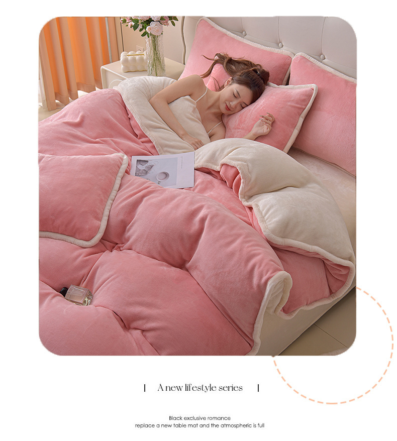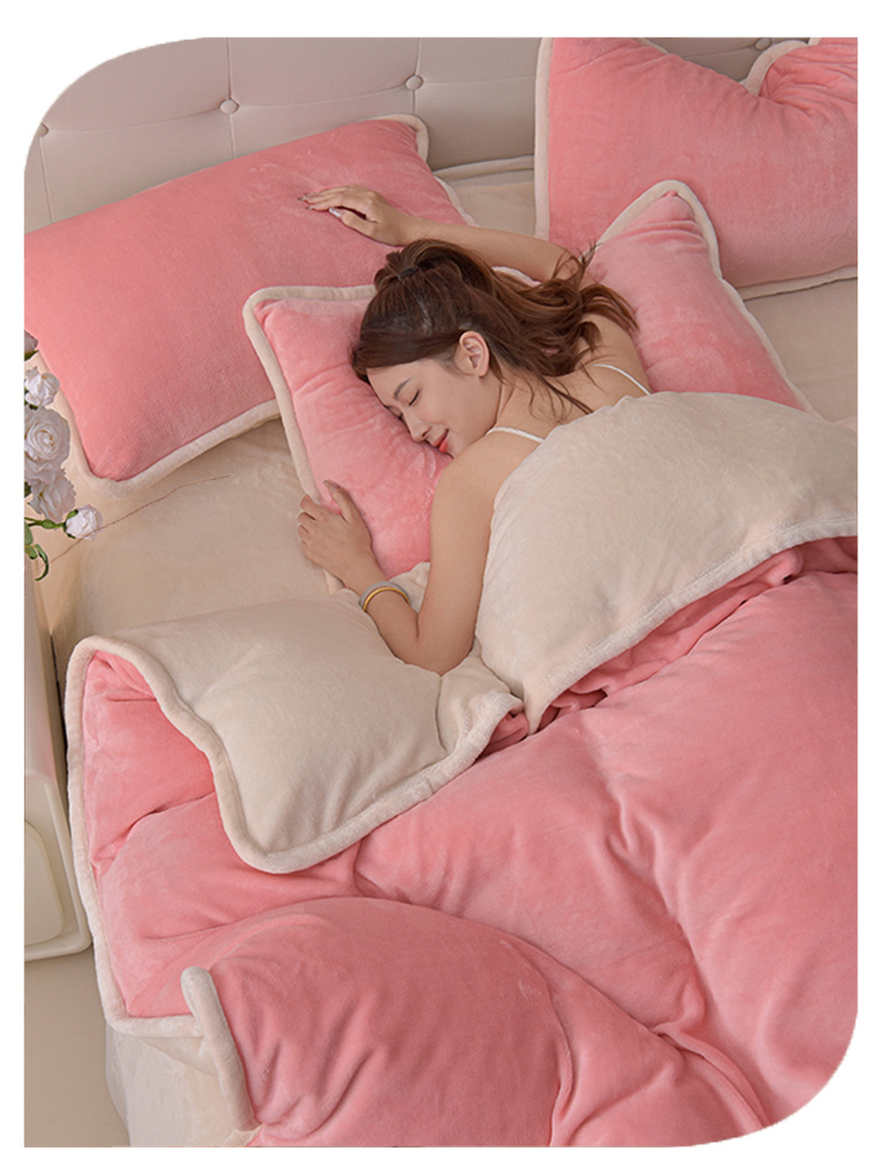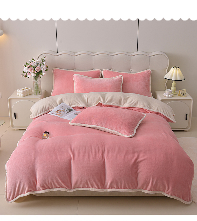 商品名称:(总)加厚牛奶绒四件套简约双面加绒被套罩床单双人家用冬季法兰绒--简约款简约款系列