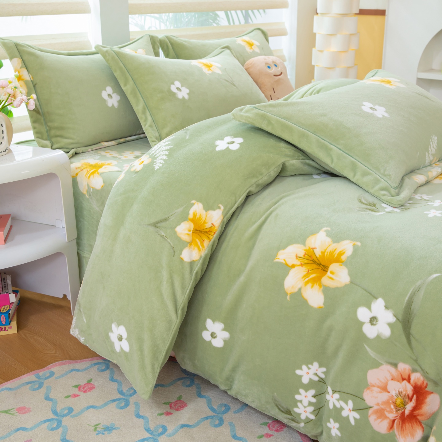 商品名称:卡迪亚家纺 2025新款金雕绒系列四件套 怦然心动-绿