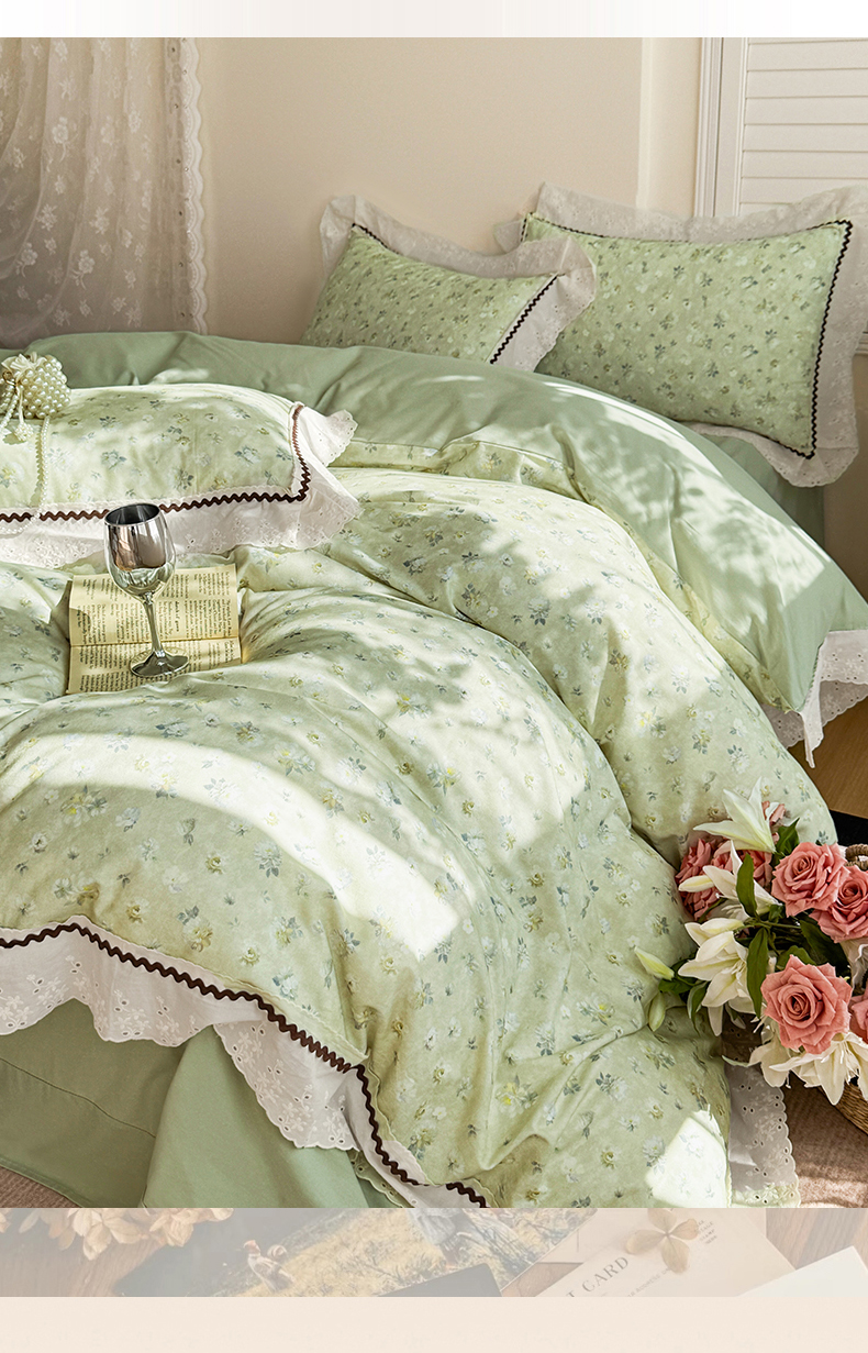 商品名称:星座家纺 2025新款秋冬全棉花边数码印花磨毛四件套 蜜瓣小雏菊-桔