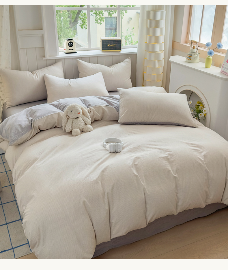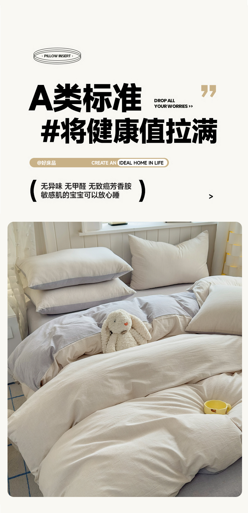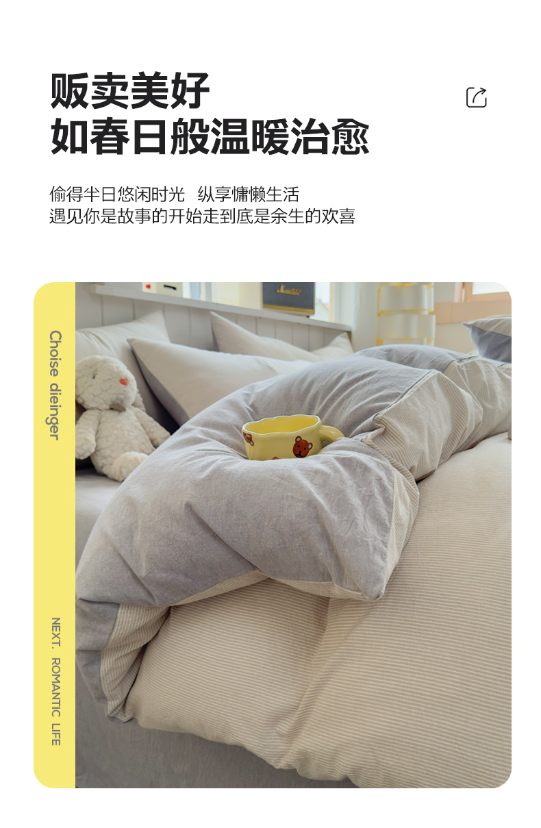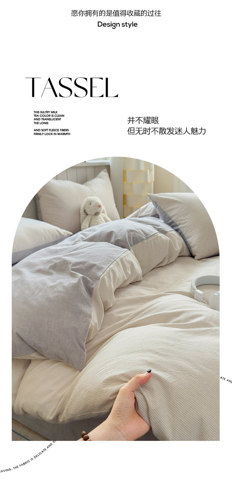 • 91家纺网 家纺一手货源 找家纺 宜家坊 2025新款A类全棉色织水洗棉被套单件纯棉格子纯色学生宿舍被罩定制定做 密条-米灰