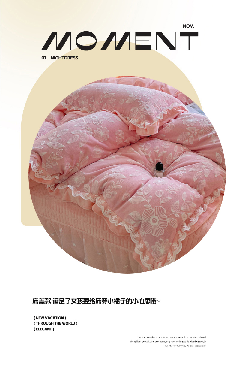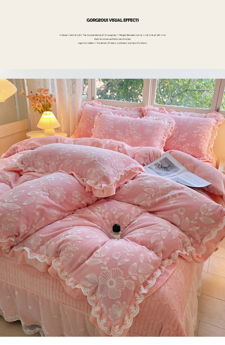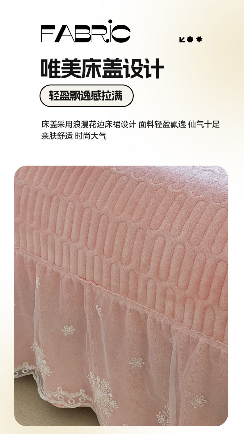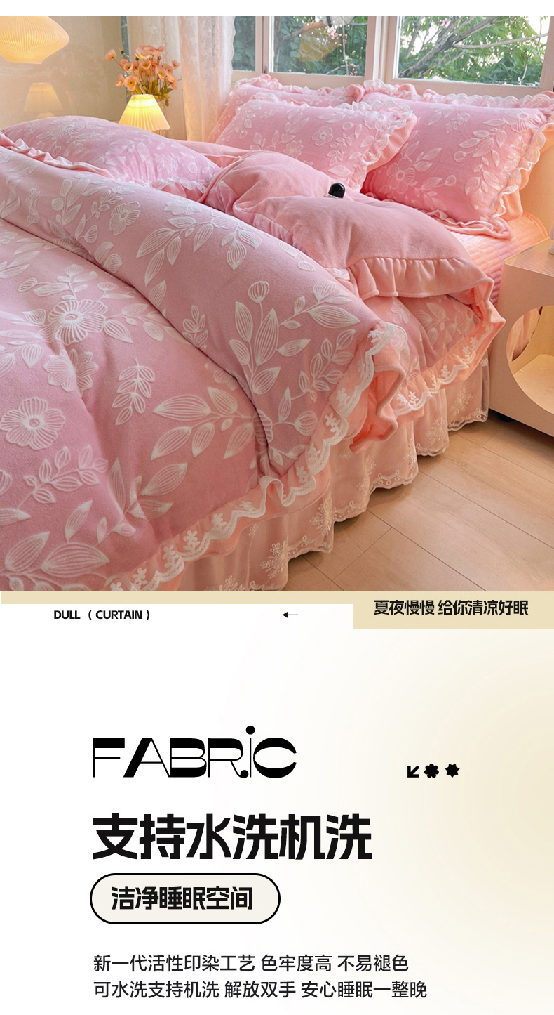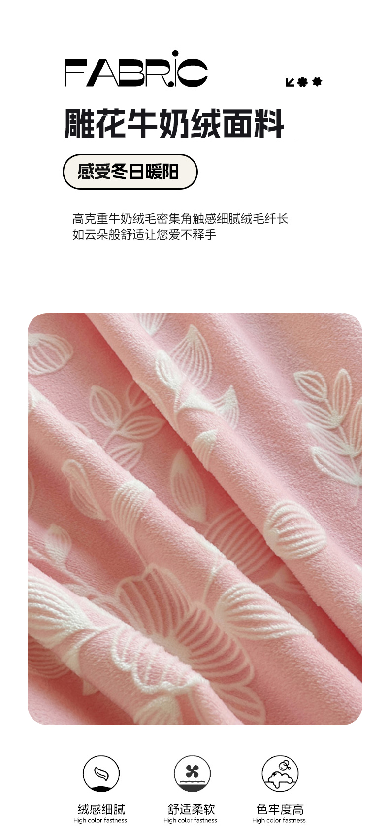 商品名称:梦之星 2025新款牛奶绒雕花床盖款床单款四件套 繁花-粉