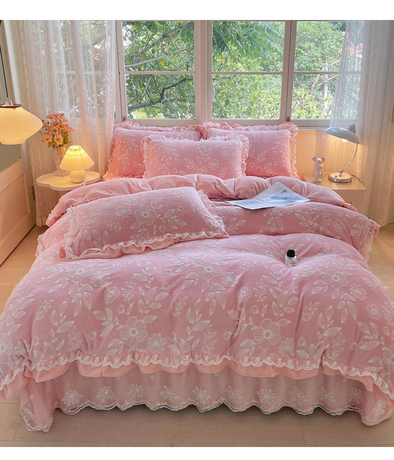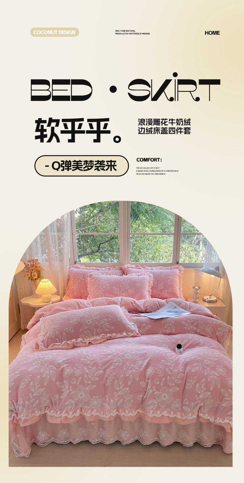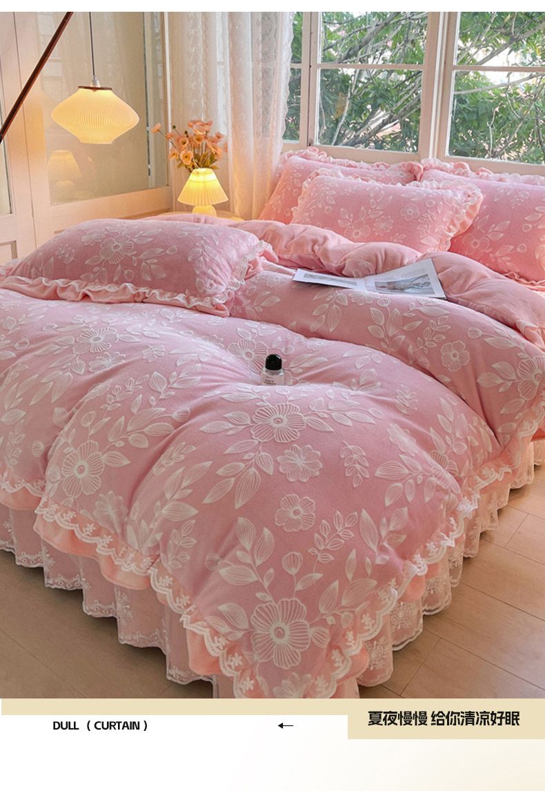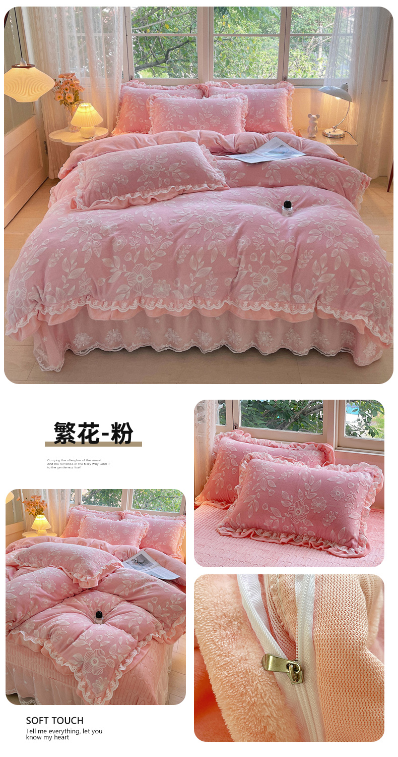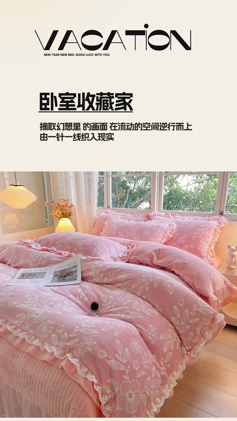 (总)梦之星 2025新款雕花绒赫本风牛奶绒花边四件套 加厚8.5斤,花边蝴蝶-粉,花边蝴蝶-灰,花边蝴蝶-棕,花边玫瑰-粉,花边玫瑰-灰,花边玫瑰-绿
