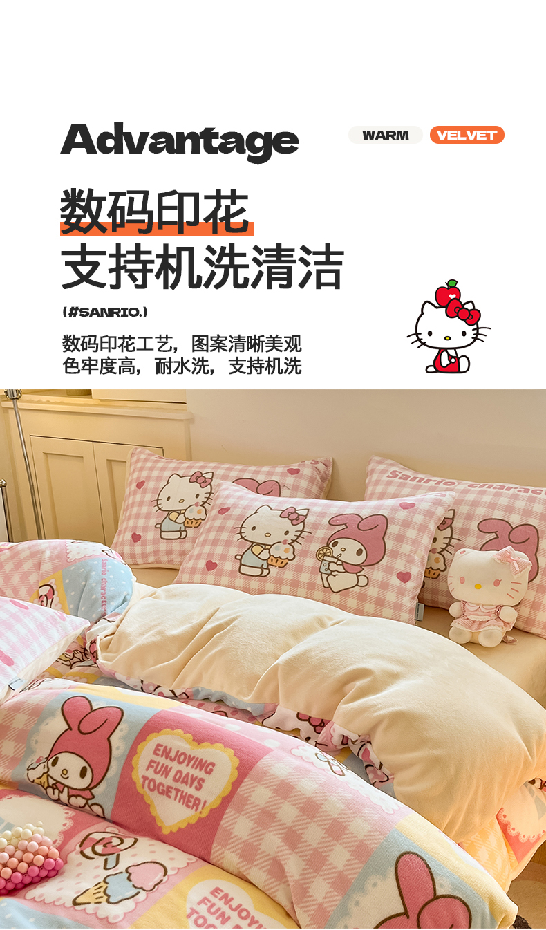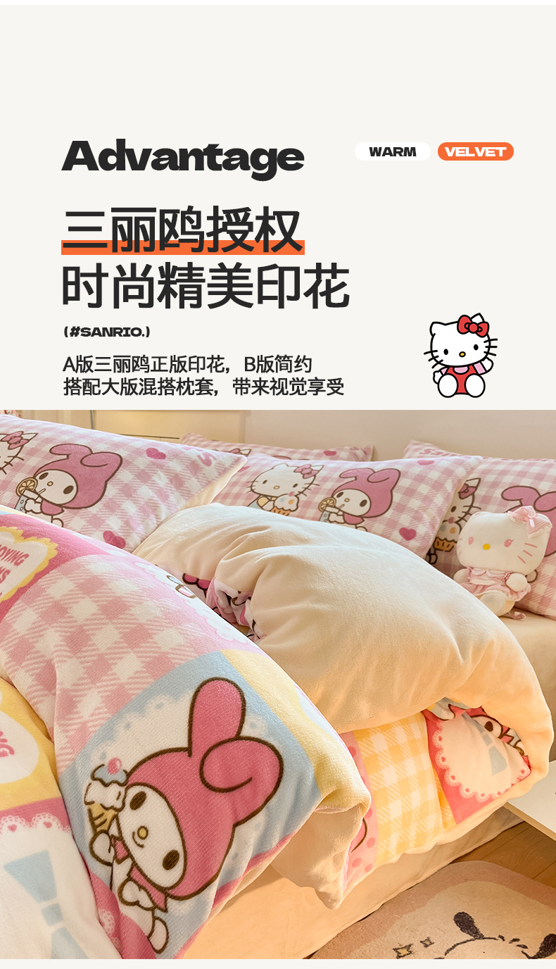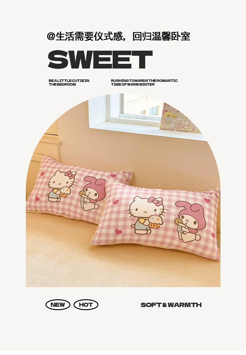 当前位置: 91家纺网 > 商品网购 > 床品套件 > 四件套 > 牛奶绒四件套 > 桃子家居 2025新品正版三丽鸥授权Kitty数码大版枕套混搭卡通加厚高克重牛奶绒系列四件套单品 绒三丽鸥-混搭美乐蒂KT