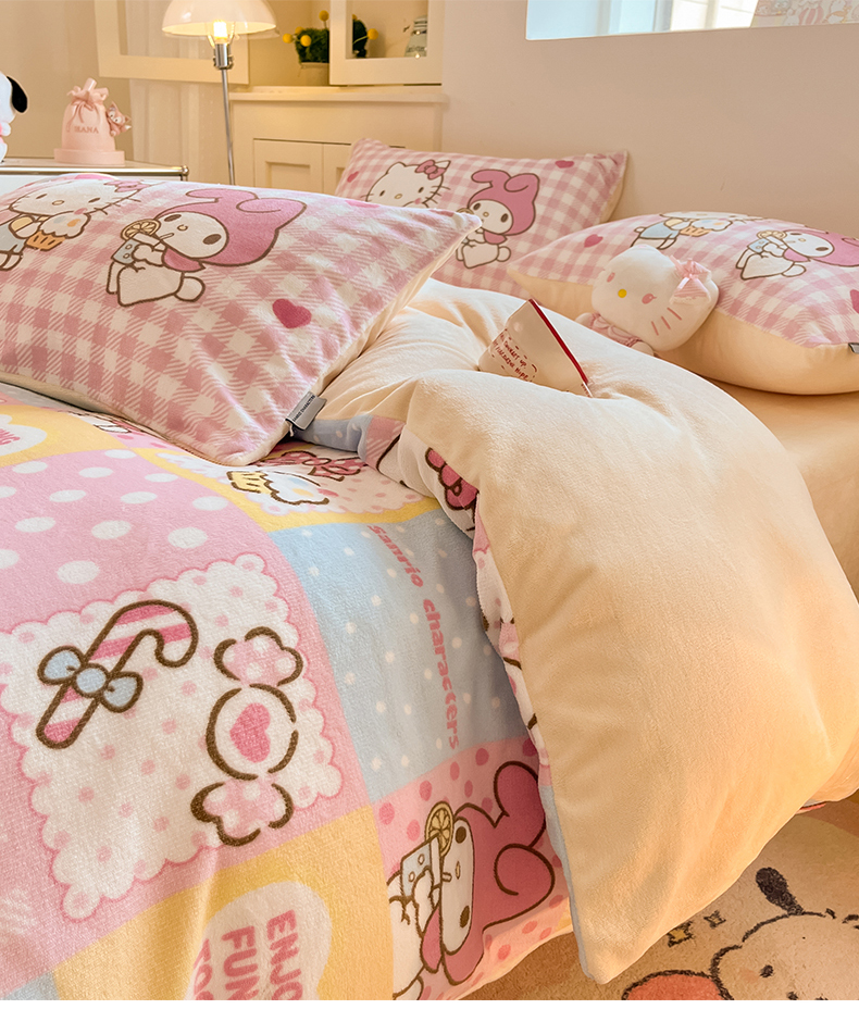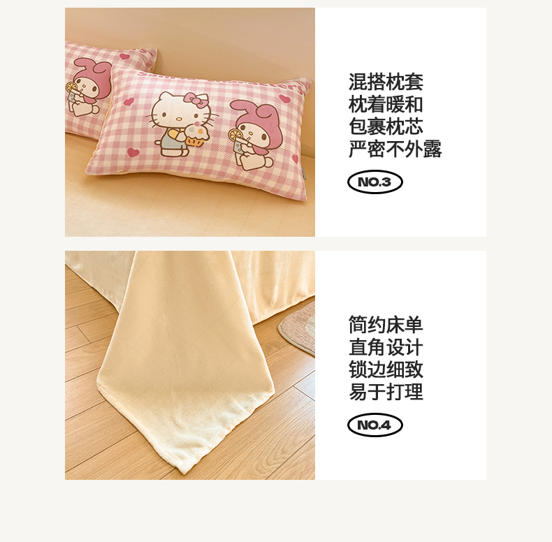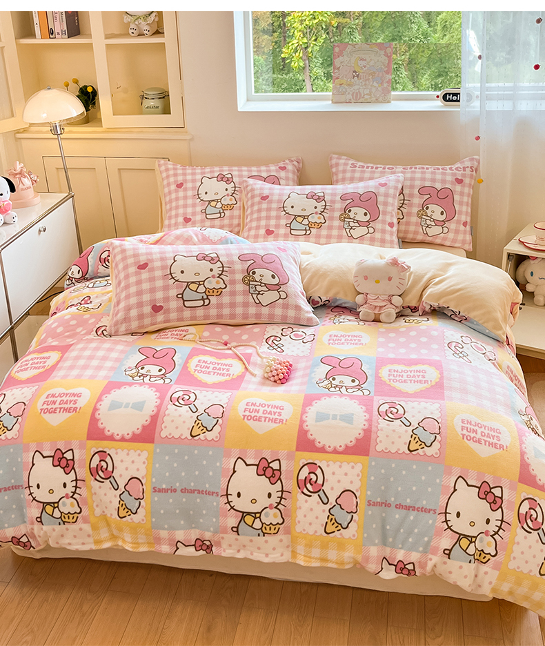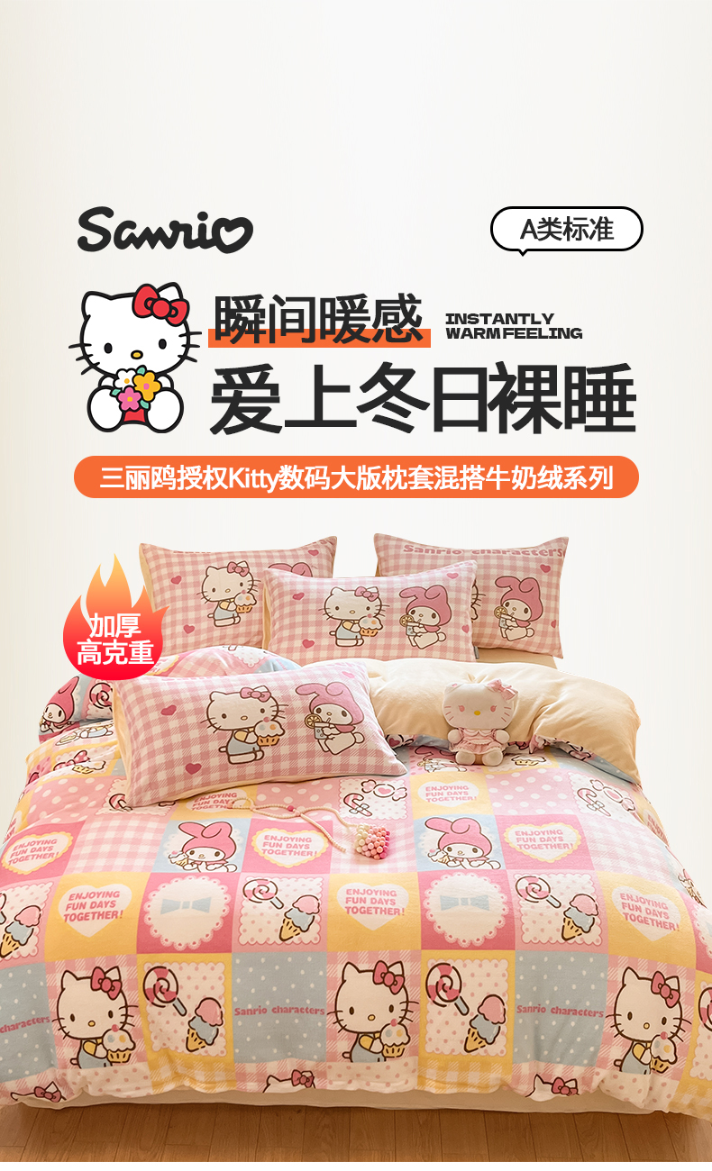 当前位置: 91家纺网 > 商品网购 > 床品套件 > 四件套 > 牛奶绒四件套 > 桃子家居 2025新品正版三丽鸥授权Kitty数码大版枕套混搭卡通加厚高克重牛奶绒系列四件套单品 绒三丽鸥-混搭美乐蒂KT