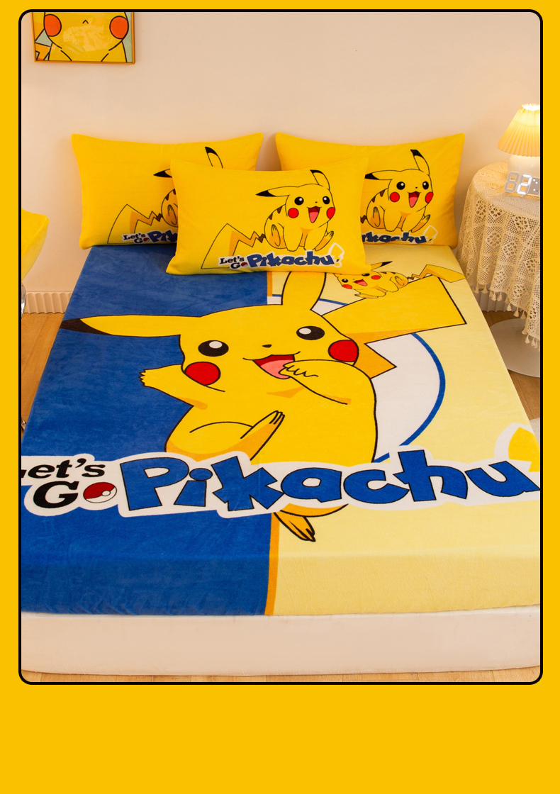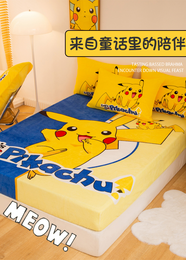 一电 外贸2025新款卡通珊瑚绒床笠单件床罩冬季加厚牛奶绒床垫保护罩全包床单套 淘气皮卡丘