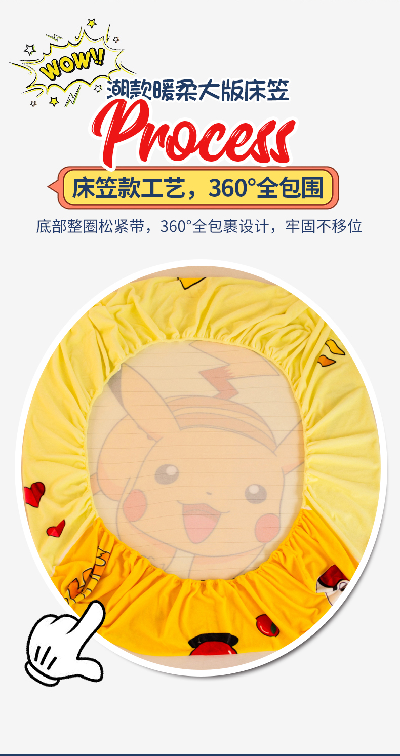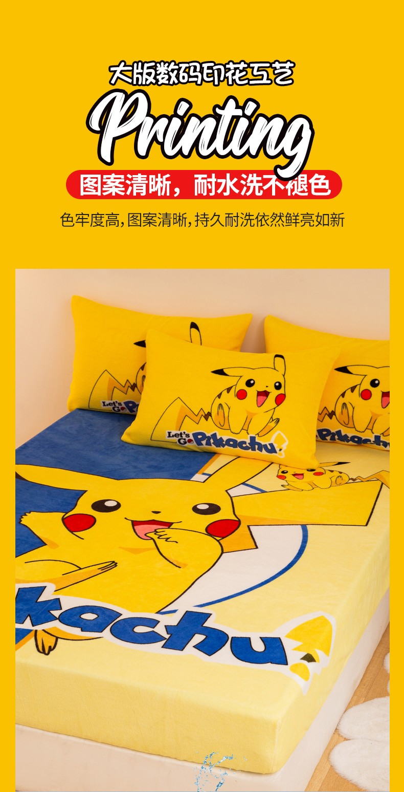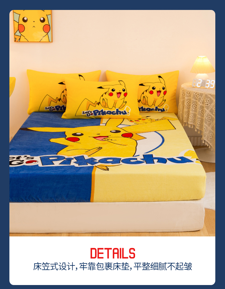 • 91家纺网 家纺一手货源 找家纺 一电 外贸2025新款卡通珊瑚绒床笠单件床罩冬季加厚牛奶绒床垫保护罩全包床单套 淘气皮卡丘