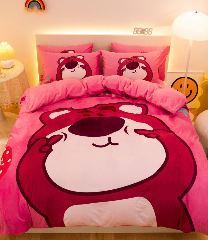 一电 2025外贸跨境电商儿童卡通床上四件套亲肤牛奶绒学生三件床单被套加大珊瑚宝宝卡通 草莓大雄