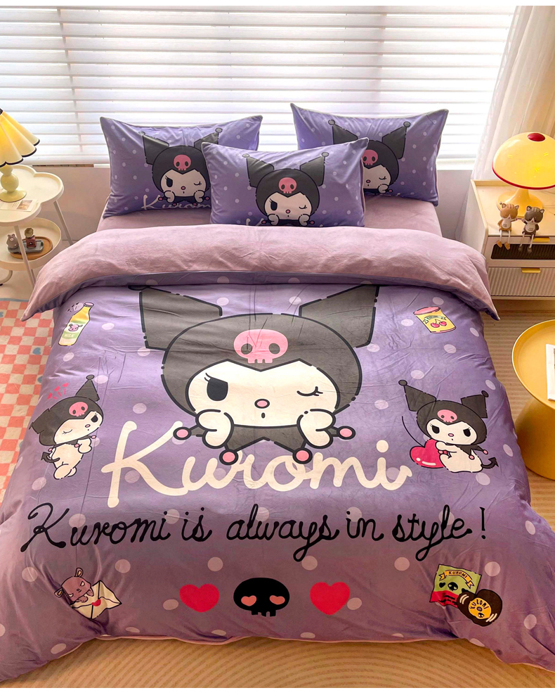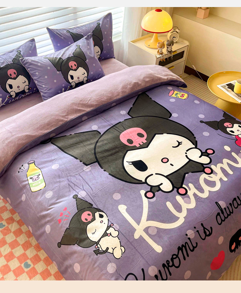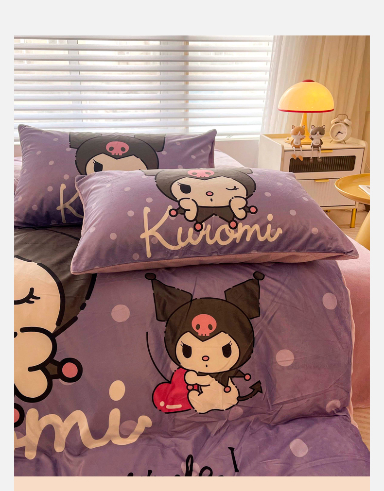 (总)一电 2025新款冬季双面牛奶珊瑚绒床上四件套法兰绒床品加绒被套床单三件套-第三批,公主库洛米,天使库洛米,甜筒库洛米,小兔子,圆点库洛米