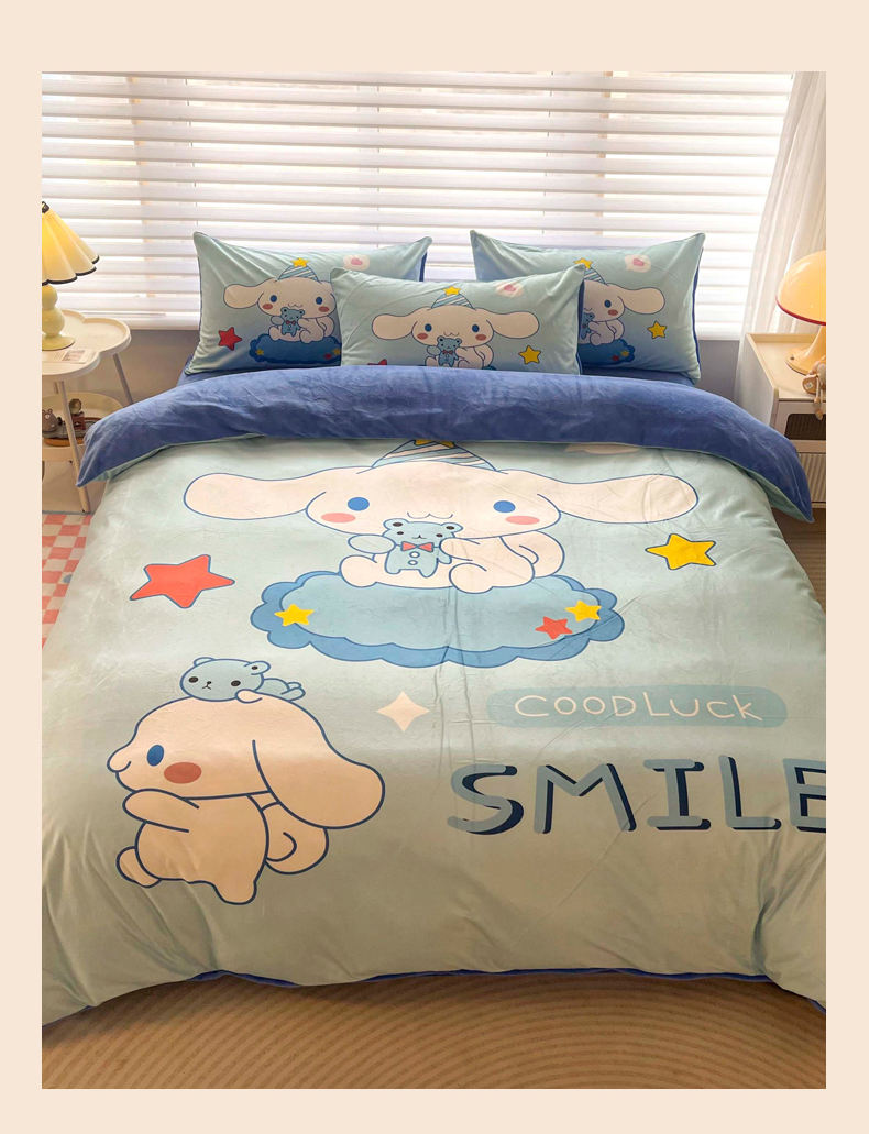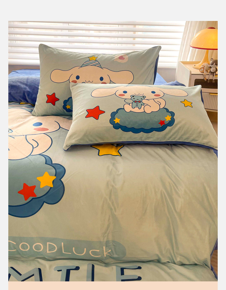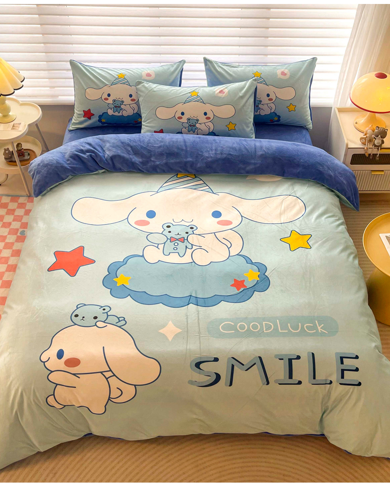 (总)一电 2025新款冬季双面牛奶珊瑚绒床上四件套法兰绒床品加绒被套床单三件套-第三批,公主库洛米,天使库洛米,甜筒库洛米,小兔子,圆点库洛米