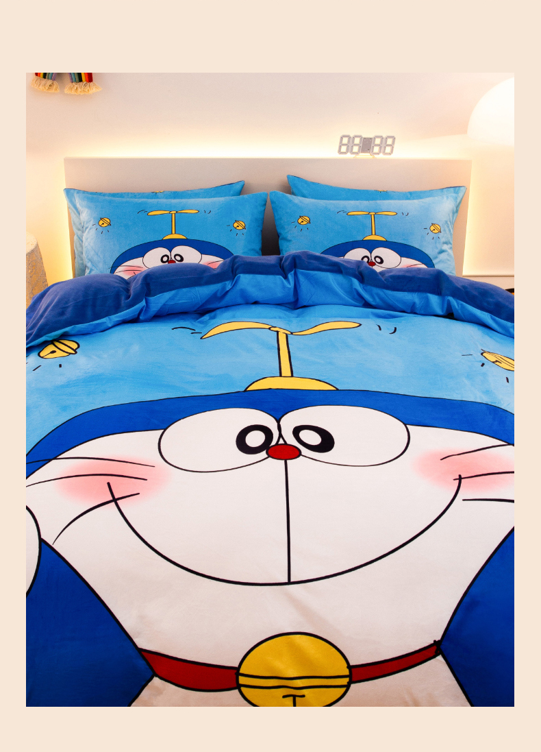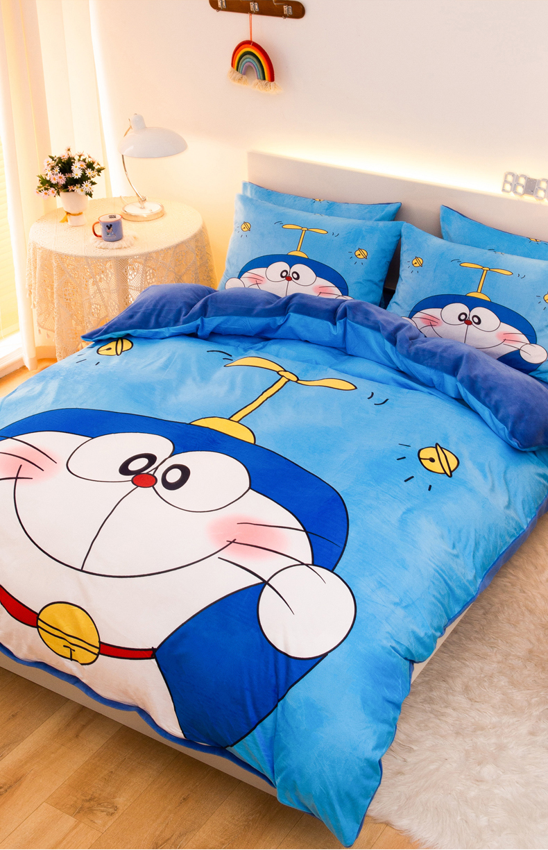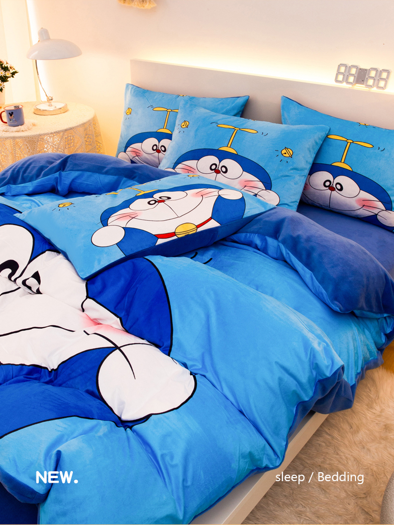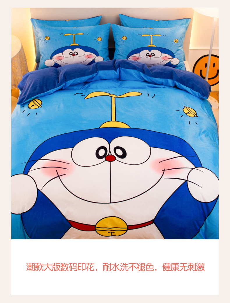 商品名称:一电 2025外贸跨境电商儿童卡通床上四件套亲肤牛奶绒学生三件床单被套加大珊瑚宝宝卡通单被套 可爱叮当