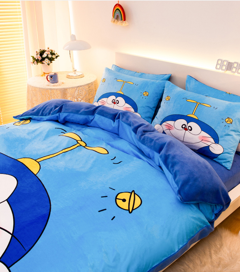 一电 2025外贸跨境电商儿童卡通床上四件套亲肤牛奶绒学生三件床单被套加大珊瑚宝宝卡通单被套 可爱叮当