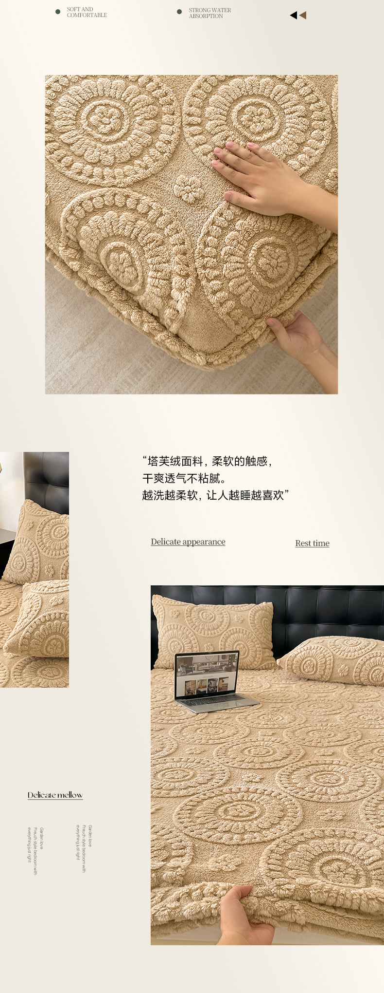 莱家富 2026新款塔芙绒舒棉绒雕花绒单床笠 床笠单件-花朵系列(可提供压缩) 花朵-桑绿