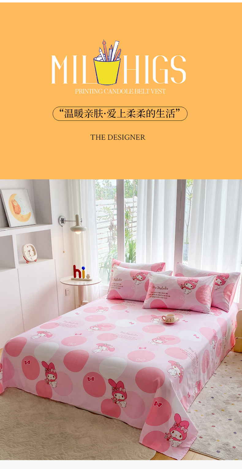• 91家纺网 家纺一手货源 找家纺 一电 2025新款卡通床单单件被单学生宿舍被罩三件套单人儿童上下床床单-第五批 圈圈美乐蒂